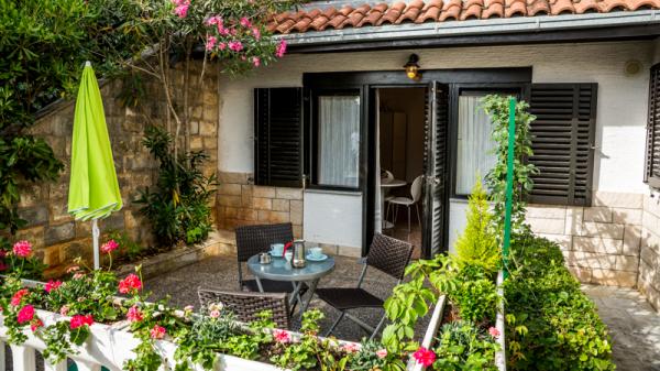 Pročitaj više Smještajne jediniceZa rezervaciju apartmana uplaćuje se akontacija 20%. od ukupne cijene, a razliku pri dolasku. Doplata za manje od 3 noćenja iznosi 30%. Klima uređaj je u cijeni. Kućni ljubimci primaju se samo u Studio 1 i naplaćuju se 6 eur po danu. Check in: od 14 sati, Check out: do 10 sati.