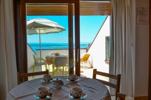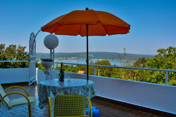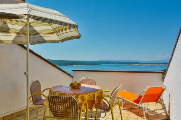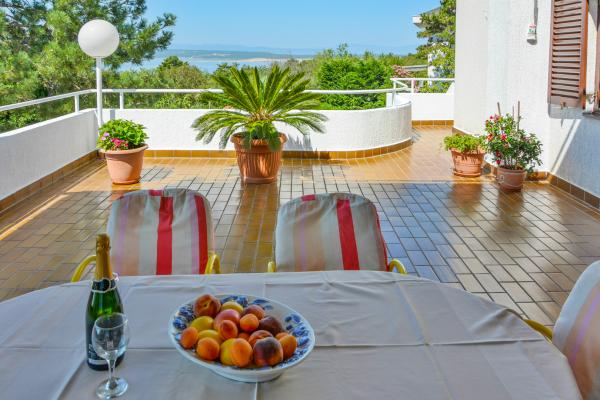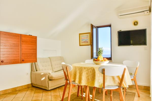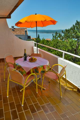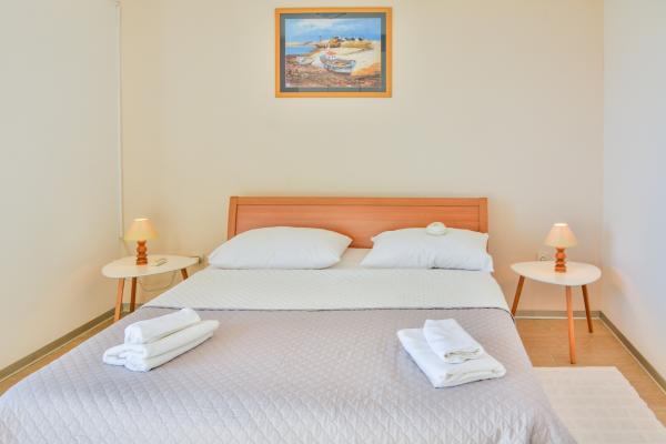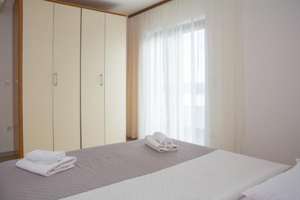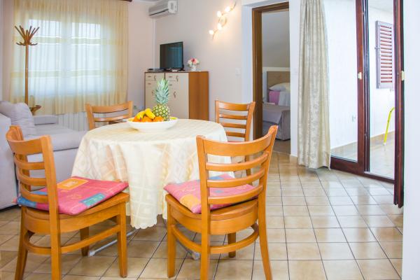 Suvremeno opremljeni apartmani za 3-5 osoba sa velikom terasom i predivnim pogledom na more. Udobni kreveti, klima i wifi. Osiguran parking.