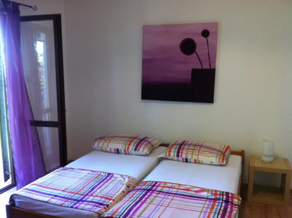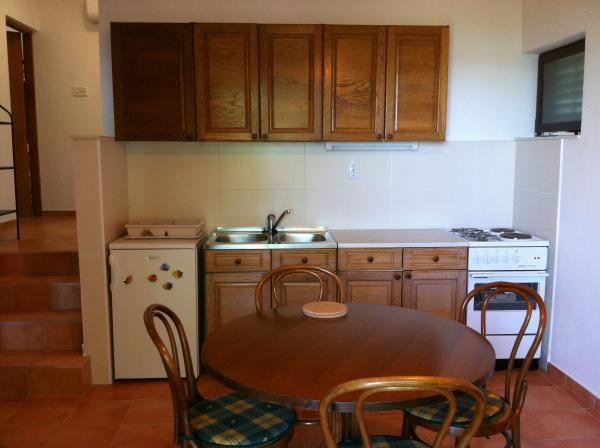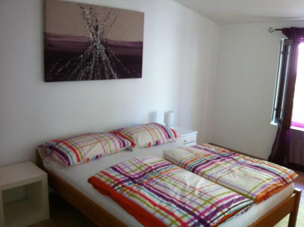 Apartmani renovirani ove godine nalaze se u objektu koji je smjesten u izuzetno mirnom i zelenom pojasu.Imaju zasebne ulaze.Kuca se sastoji od samo 2 apartmana te postoji mogućnost najma cijele kuće pri čemu je moguće povezati apartmane u jednu cjelinu. App 1 ima terasu od 50 m2 okruzenu zelenilom te 2 kupaonice . App2 ima 1 kupaonicu i terasu od 10 m2 sa prekrasnim pogledom na more. Udaljenost od mora je 10-15 min hoda ili 5 minuta automobilom. Osigurana parkirna mjesta za 3 automobila.
