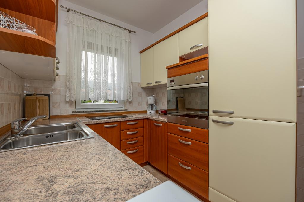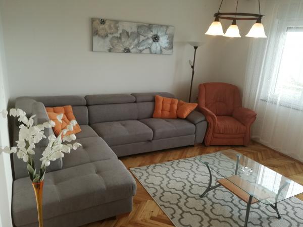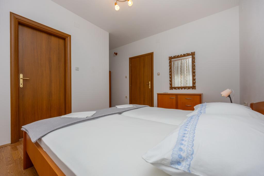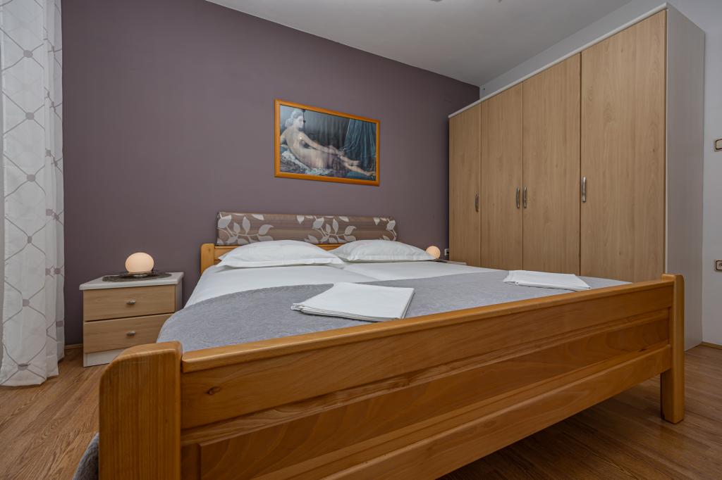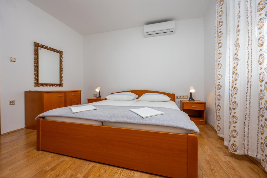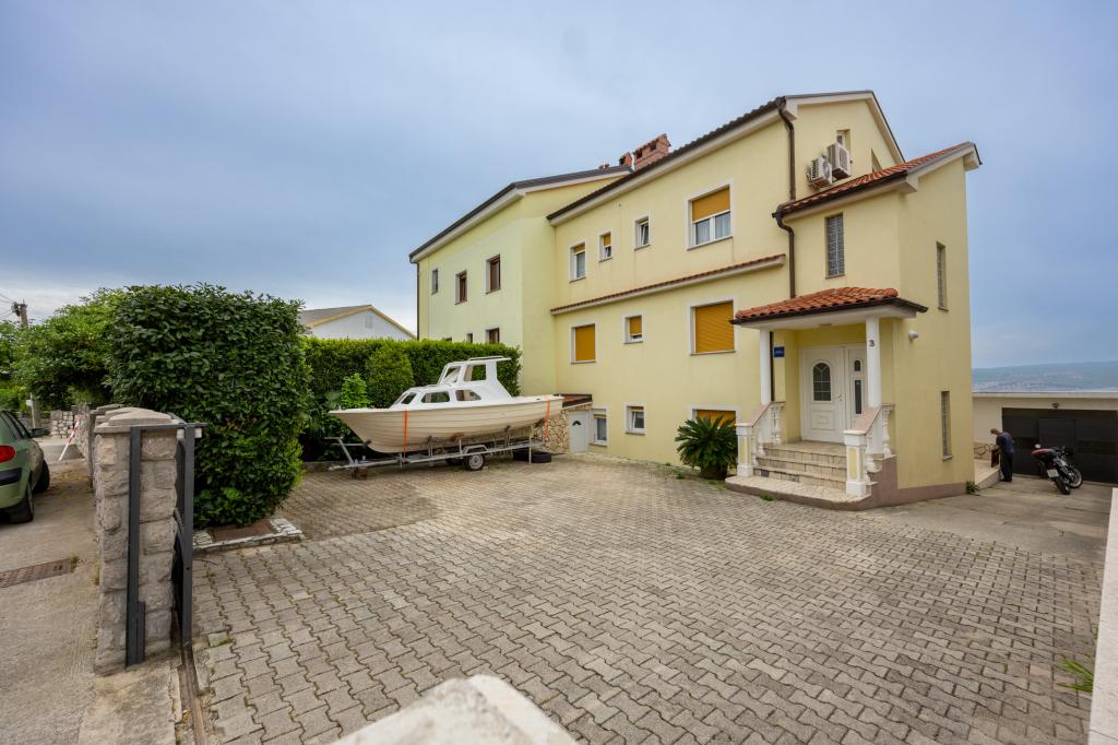 Iznajmljujemo 2 velika apartmana za do 5 osoba u Crikvenici. Apartmanska kuća se nalazi oko 400 m od glavne gradske pješčane plaže u Crikvenici, pet minuta hoda. Oba apartmana imaju veliki balkon s lijepim pogledom na more. Na raspolaganju vam je i veliki vrtni roštilj, tako da ga možete koristiti svaki put kada želite, budući da ste naš gost. Na raspolaganju Vam nudimo veliki parkirni prostor osiguran ogradom besplatno. Svaki apartman je opremljen besplatnim wi-fi, aircondition i Sat-TV. Svaki apartman ima kuhinju, 2 spavaće sobe i dnevni boravak. Punjač za električna vozila dostupan na lokaciji. Već smo više od 30 godina u turizmu i jamčimo vam predivan odmor s nama u našim apartmanima.