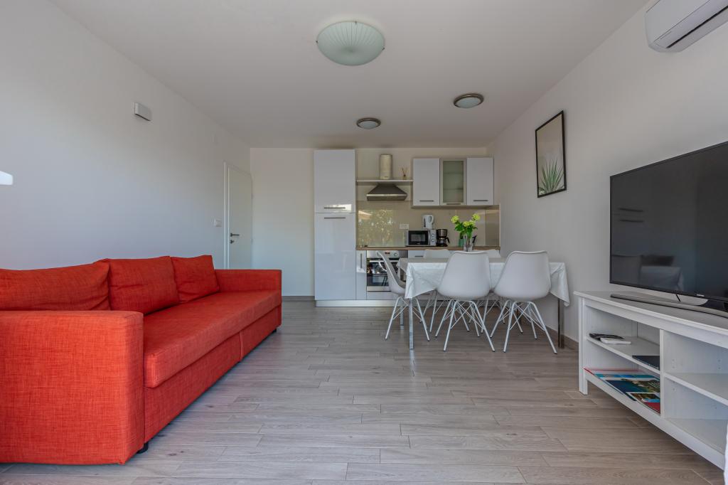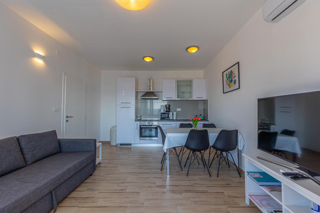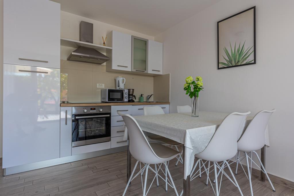 Objekt je izuzetno čist, uredan, redovito održavan, jednom riječju predivan. Kao što je prikazano u oglasu u stvarnosti je još ljepši. Matea je preljubazna i divna, veoma kulturna i u potpunosti je posvećena ugodnosti gostiju, a vi imate utisak kao da ste sami, nitko van ne smeta. U apartmanu imate apsolutno sve, redovno se mijenjaju ručnici i posteljina, sve sobe imaju klimu, svi uređaji su novi, kao i sav namještaj. Auto parkirate odmah ispred objekta. Sve je izuzetno blizu, plaža, šetnica, market, restorani...3-5 minuta hoda. Internet je odličan u objektu, a imate internet i na plaži do koje vam treba oko 3 minute hoda niz stepenice. Preporuka i nećete se pokajati.