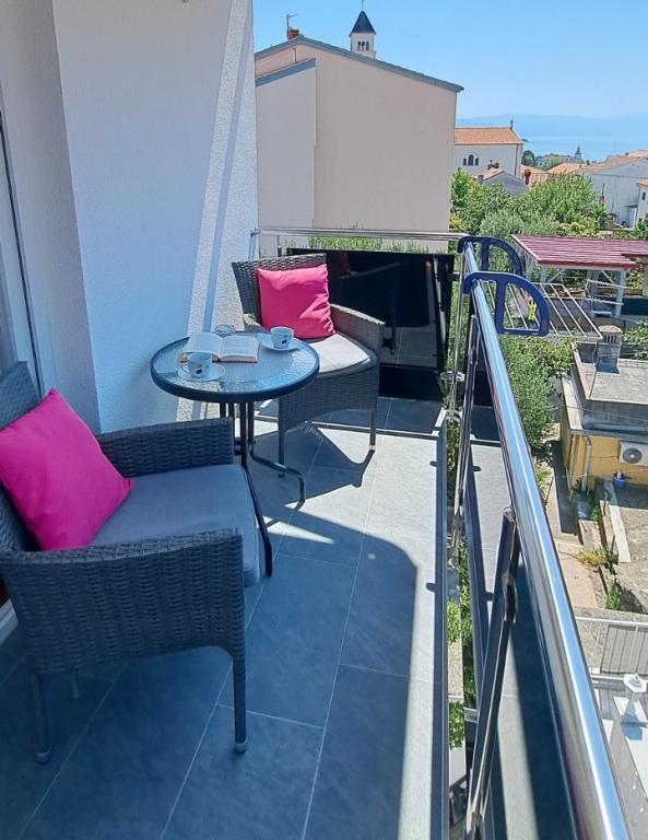 Suvremeno uređeni apartmani u samom centru Crikvenice. Apartmani su smješteni u mirnoj ulici, sa pogledom na more, 5 minuta hoda do plaže i centra. Svi apartmani su opremljeni klima uređajem (nije uključena u cijenu apartmana), TV, Internet (wi-fi) te je osigurano parkirno mjesto za vaše vozilo. Dragi gosti, veselimo se Vašem dolasku!