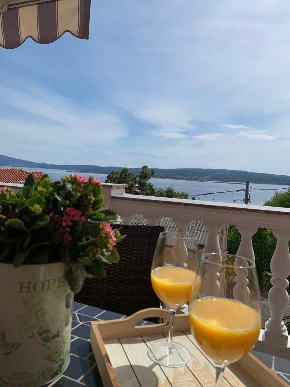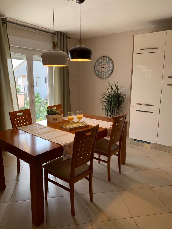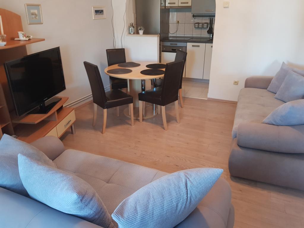 Kompletno opremljeni apartman i za 4 Osobe u mirnom naselju Benići u Crikvenici, udaljen 800 metara od mora sa velikom terasom. Oba apartmana su opremljena novim i modernim namještajem, kuhinja je opremljena : perilicom za suđe, veliki hladnjak sa ledenicom, štednjak na struju, pećnica, kafe aparat i sav pribor ostali u kuhinji. Dvije spavaće sobe sa duplim krevetom kupaona sa tuš kadom, tv, sat tv, oba apartmana su opremljena sa klima uređajem Za dodatne informacije slobodno nam se javite sa zadovoljstvom ću vam odgovoriti. Kućni ljubimci manji uz nadoplatu 7 eura dan. Napomena u apartmanu Anka klima uređaj nije u cijeni i on se dodatno naplaćuje po želji gosta 6 eura dan.