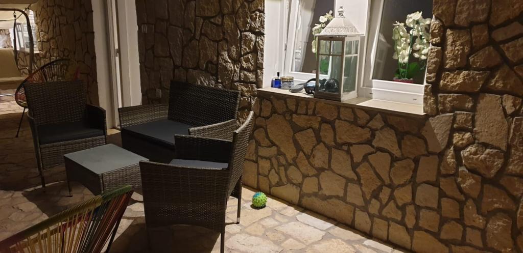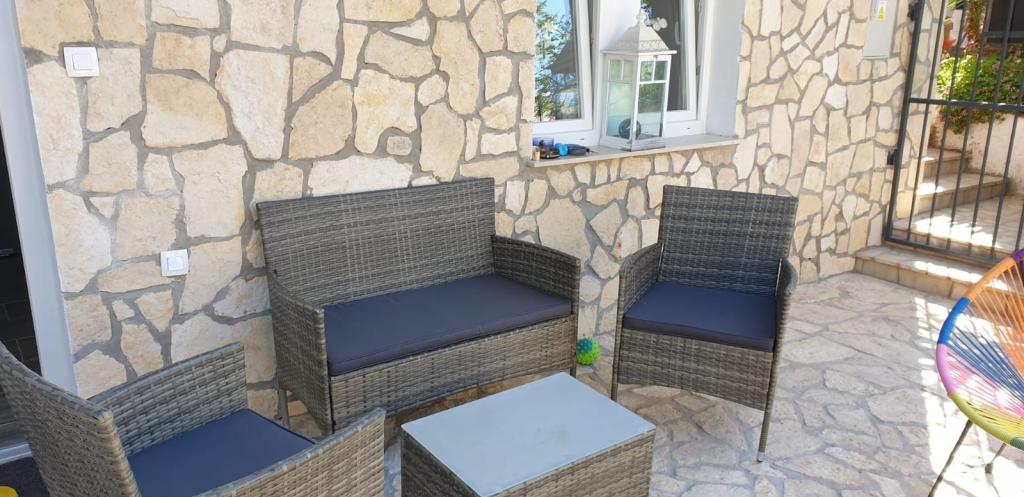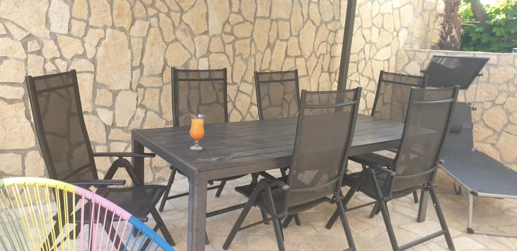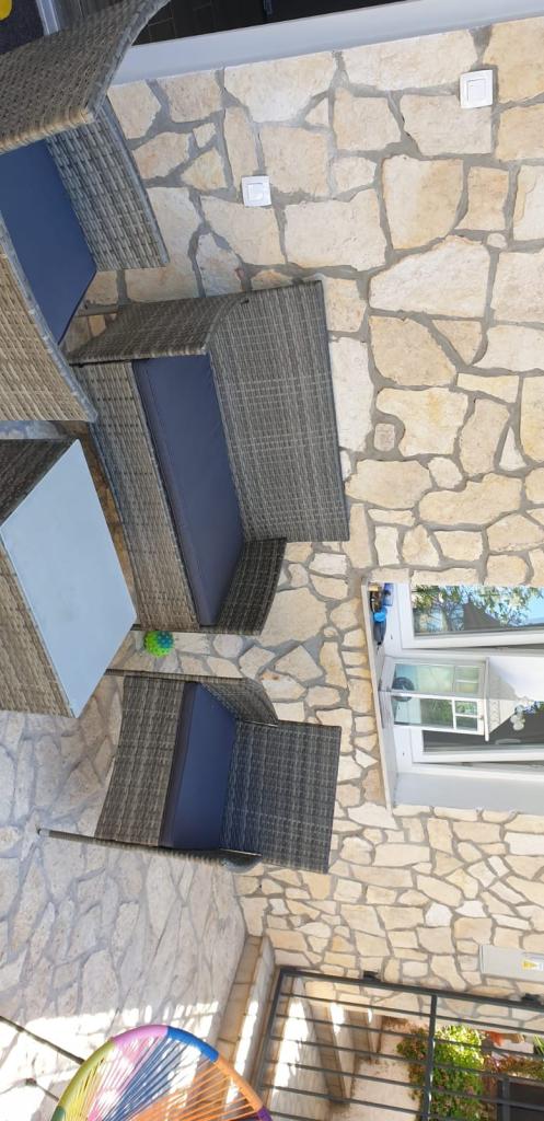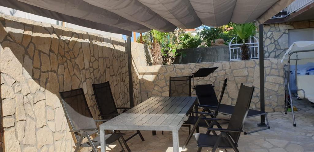 Centar...3 min. hoda do plaze i promenade , a opet mirno.. Parkirno mjesto, lijepa terasa sa grillom, mogucnost kuhanja na terasi,..lezaljke za suncanje, solarni tus.. Apartman ima klimu, WIFI, perilicu za rublje..2 spavace sobe, dnevni boravak sa TV..Kuhinja, kuhalo za vodu, kaffemasina