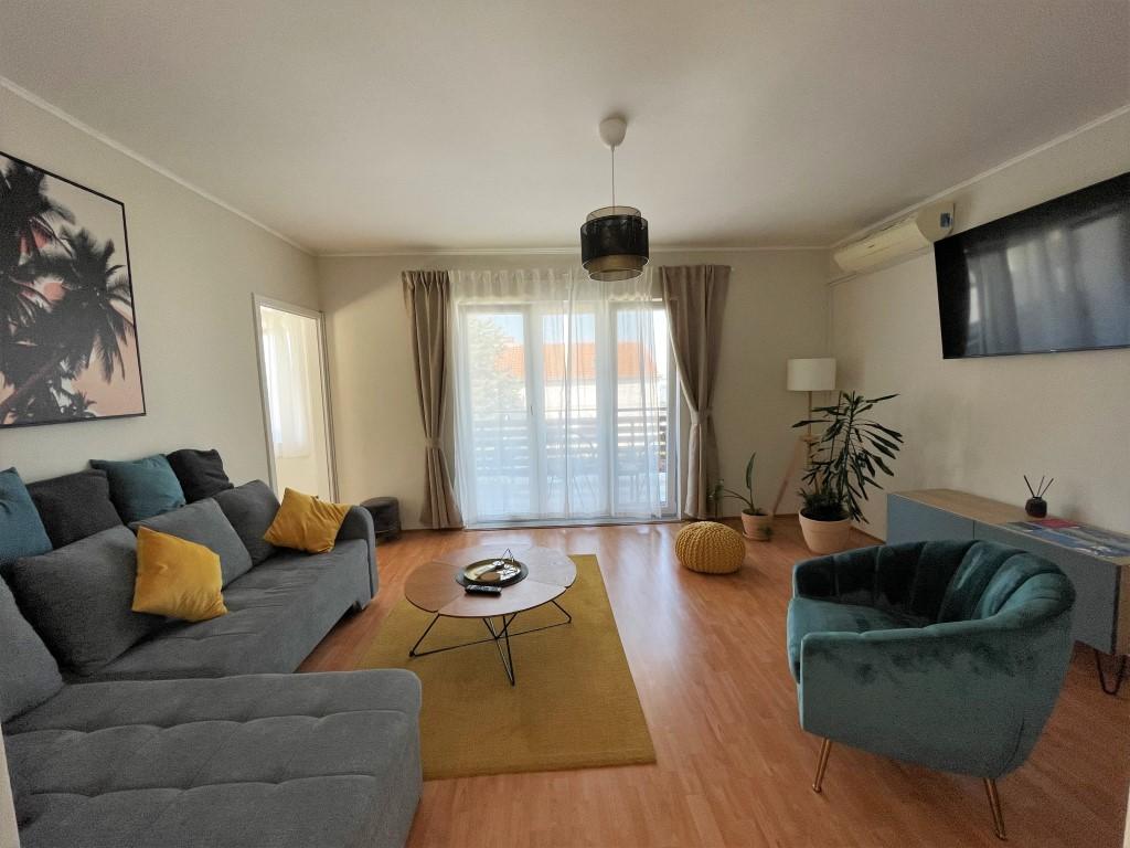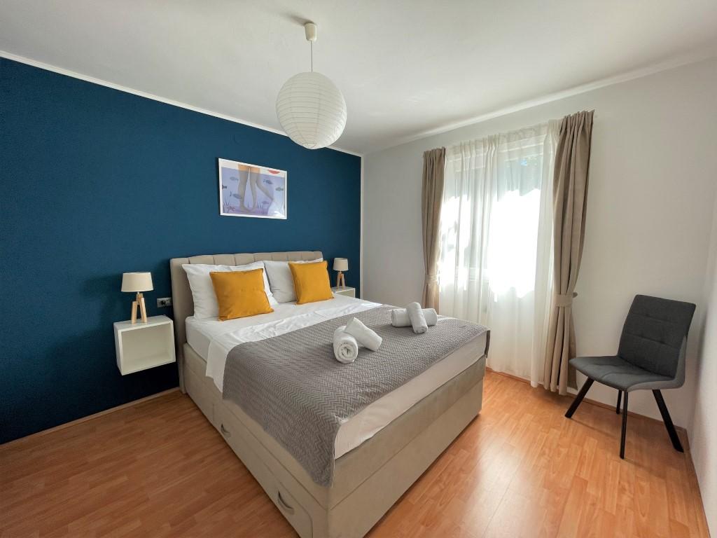 Uredni i opremljeni apartmani u mirnom djelu Crikvenice, udaljeni 650m od najbliže plaže (Crni Molo), te 700m od najbližih trgovina (Lidl, Duga Mall - Konzum).