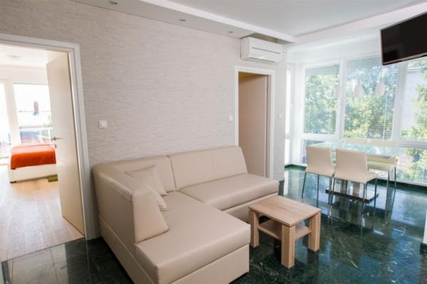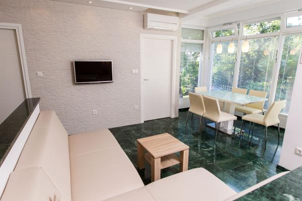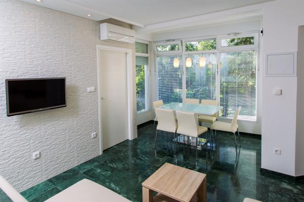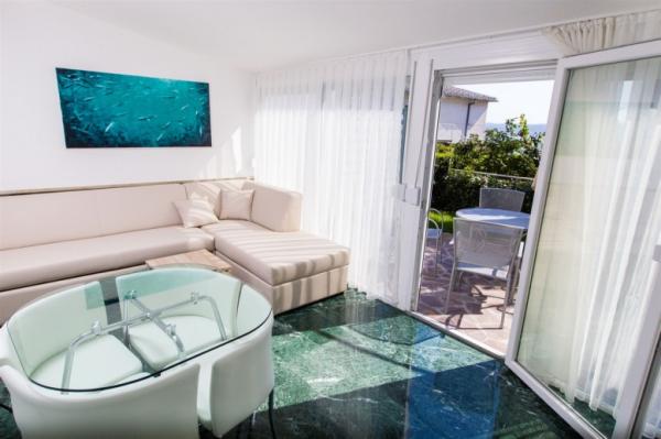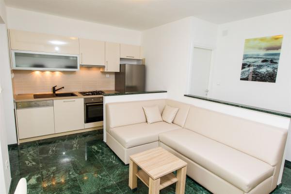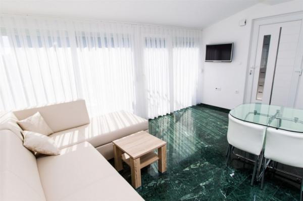 ... sa puno stila uređeni apartmani. S jedne strane vrt sa dosta zelenila, s druge blizina mora i mogućnost pravljenja izleta u okolna mjesta, ostavlja puno slobodnog prostora za svačiji ukus. Izuzetno njegovan i čist objekt te jako prijatni i uslužni vlasnici su učinili naš boravak još boljim. Lokacije je idealna, sigurno nećete požaliti!