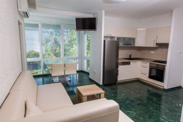 Vrlo moderan i ukusno uređen apartman. Vanjski prostor je vrlo dobro održavan. Centar i plaža nalaze se u blizini i na pješačkoj udaljenosti. Vlasnik je lijep i spreman pomoći. Ovaj je smještaj povoljan i preporučen.