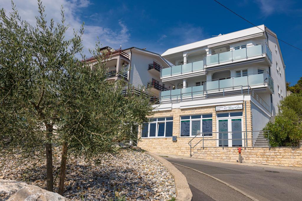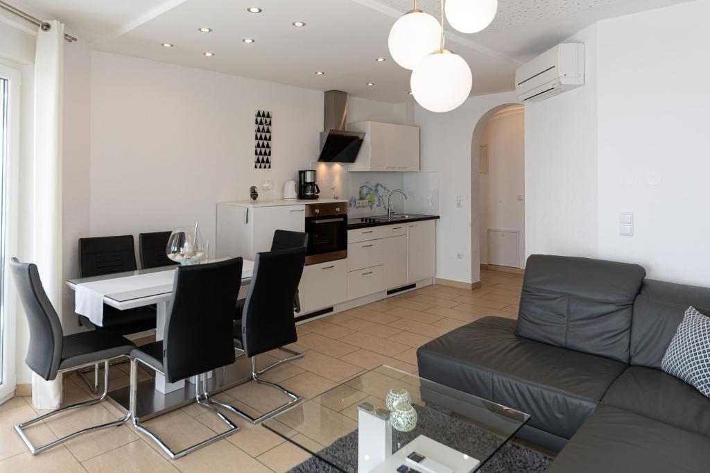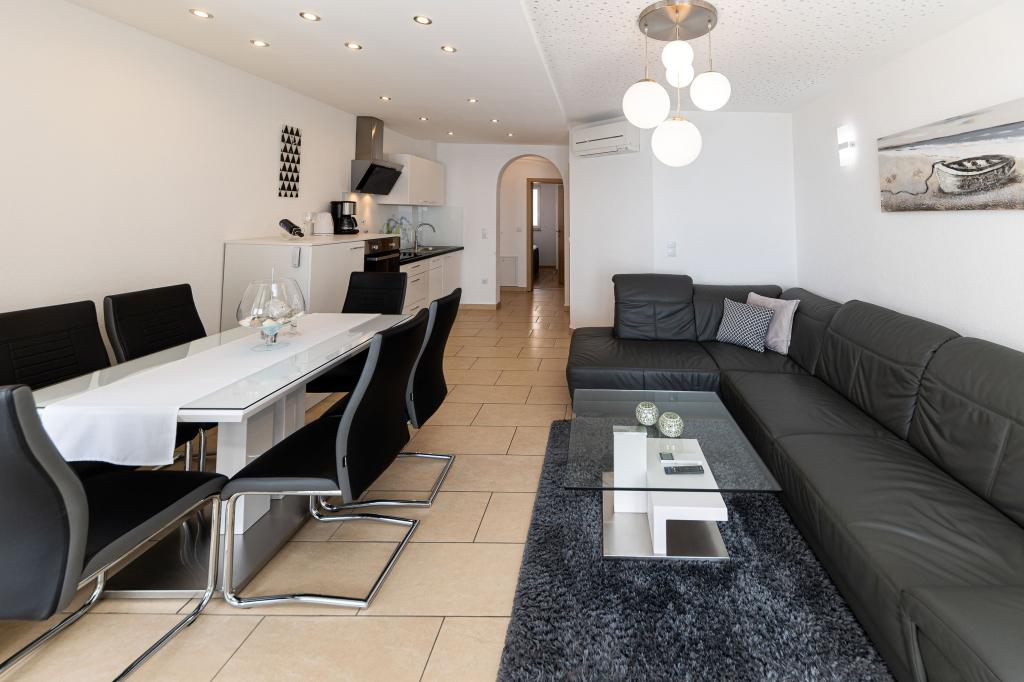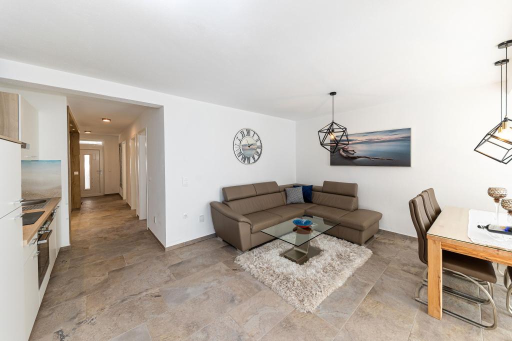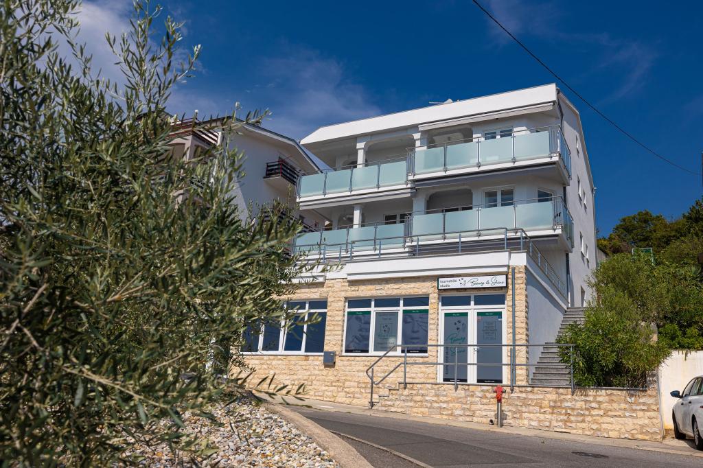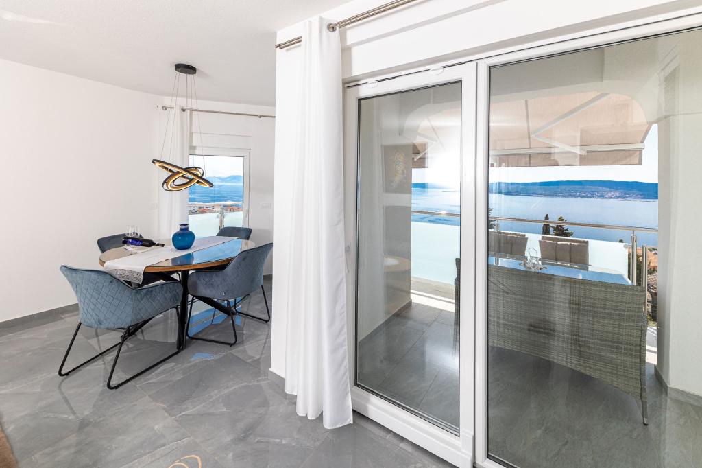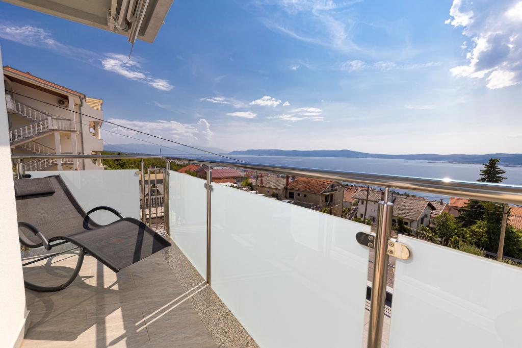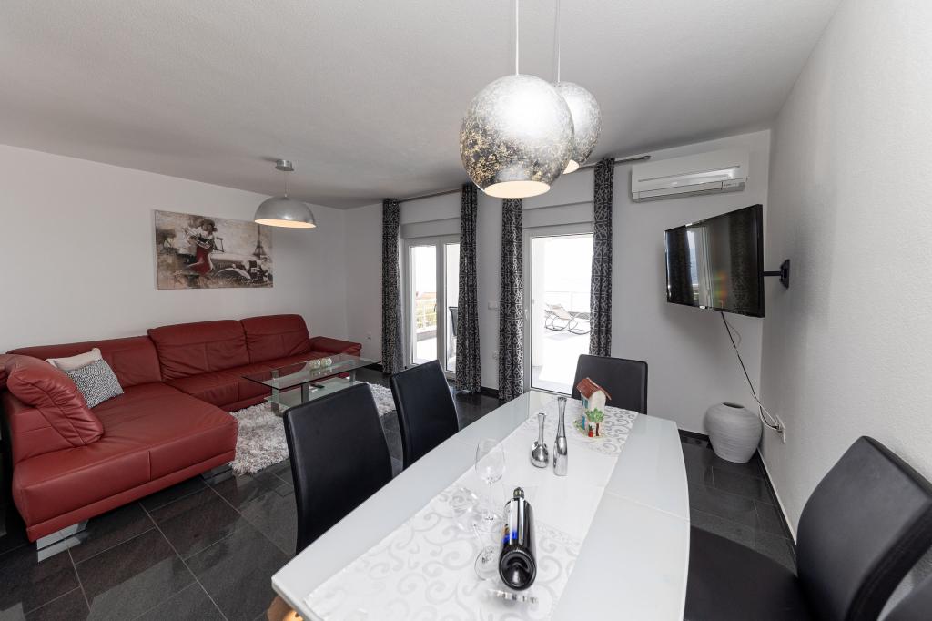 Ova moderna kuća s apartmanima savršen je izbor za odmor i život uz more. Smještena na mirnoj lokaciji u gradu, nudi privatnost i tišinu, dok je u blizini svih potrebnih sadržaja. Apartmani su moderni, opremljeni najnovijom tehnologijom i namještajem, a veliki prozori omogućuju prekrasan pogled na more. Unutrašnjost je minimalistička, s naglaskom na udobnost i funkcionalnost, pružajući idealno okruženje za opuštanje. Kuća se nalazi daleko od buke i gužve, ali s brzim pristupom centru grada. Iza kuće je prostor za roštiljanje, savršeno za opuštena okupljanja na otvorenom. Uz kuću su besplatna parkirna mjesta, što olakšava parkiranje bez stresa. Ova kuća nudi savršen spoj modernog života, privatnosti i prirodnog okruženja, s pogledom na more i svim pogodnostima koje bi poželio svaki posjetitelj.