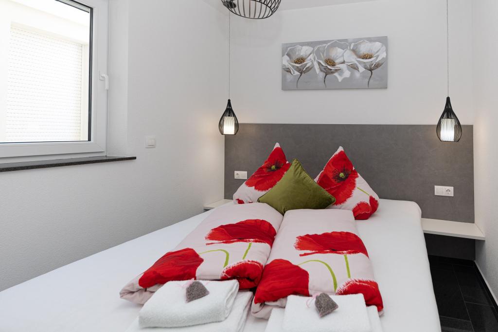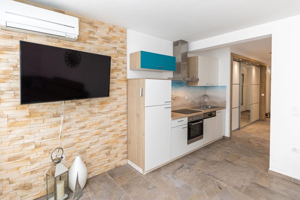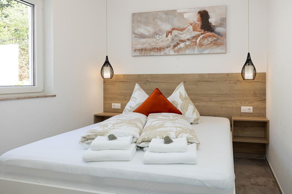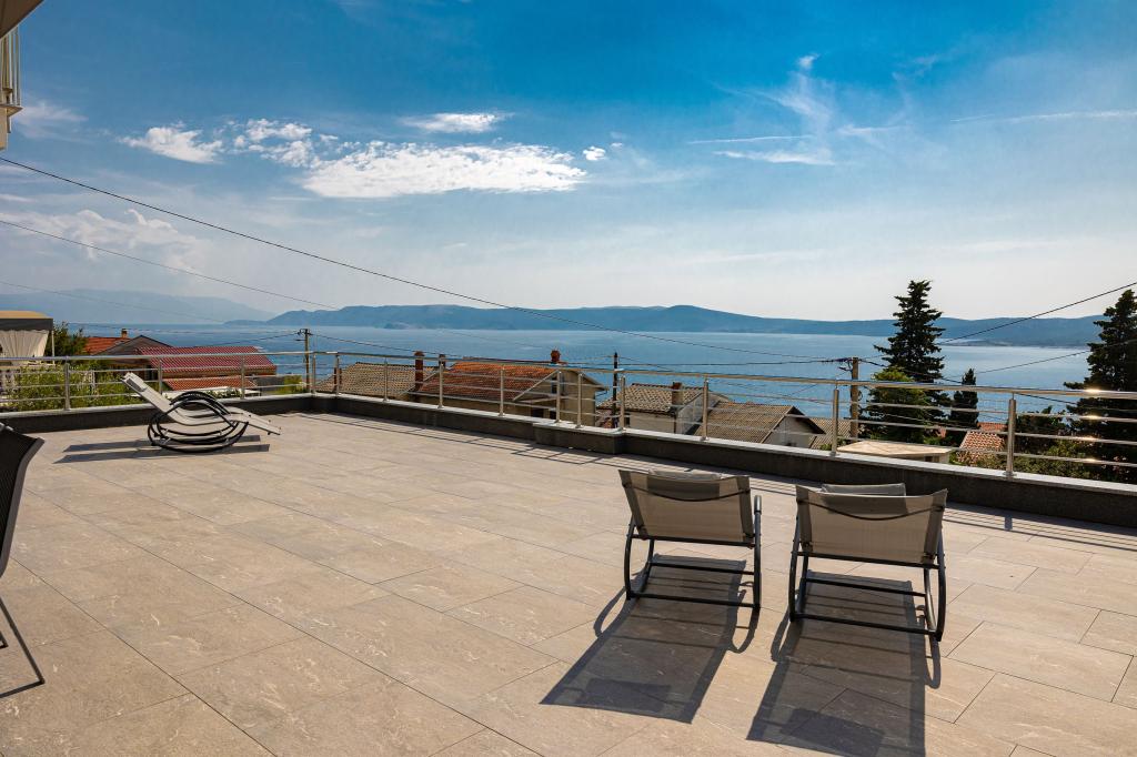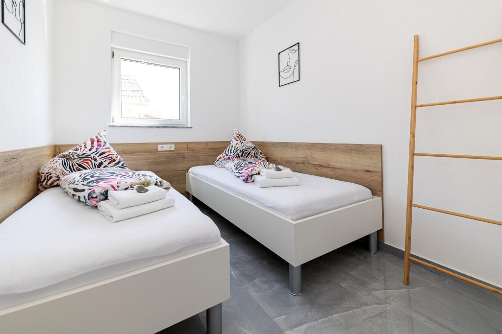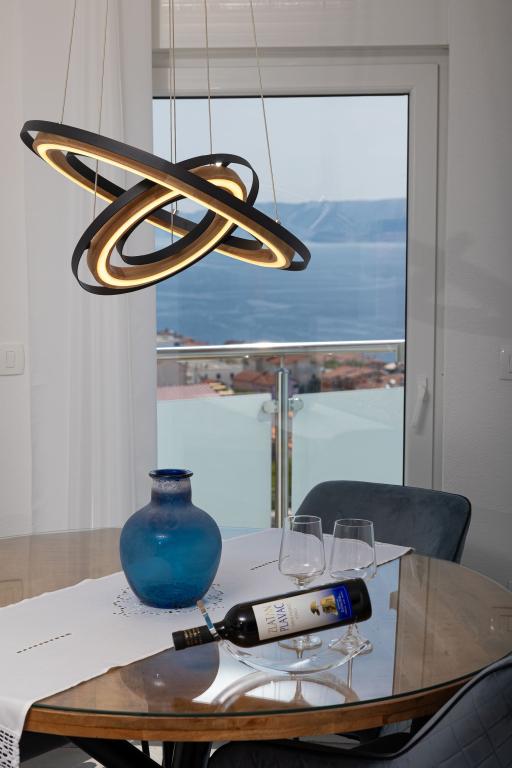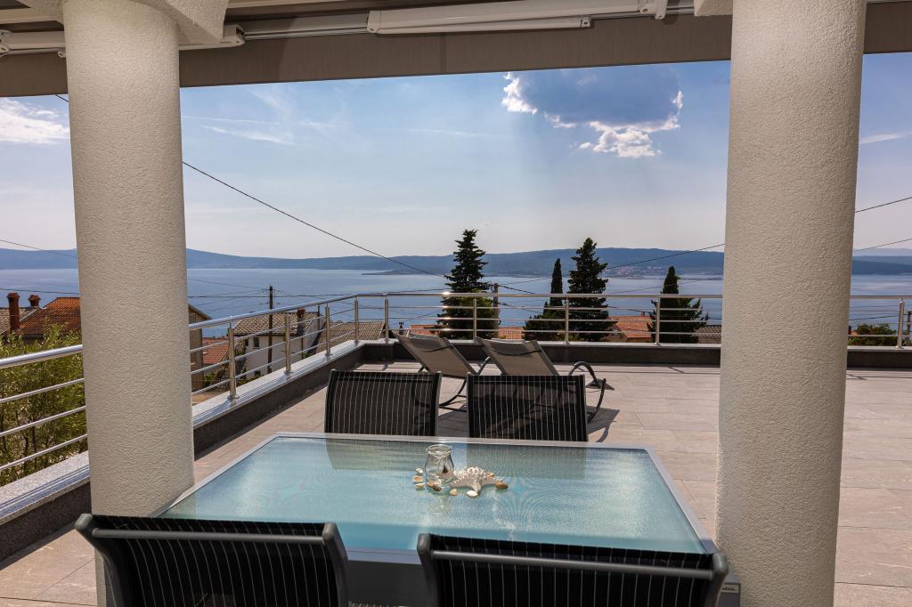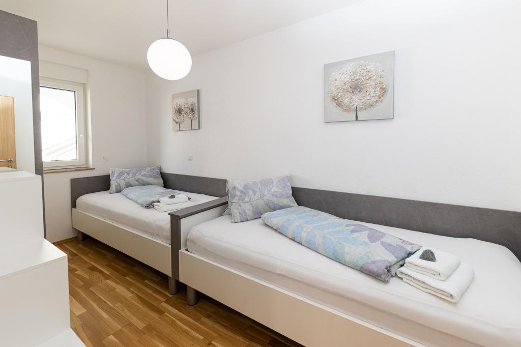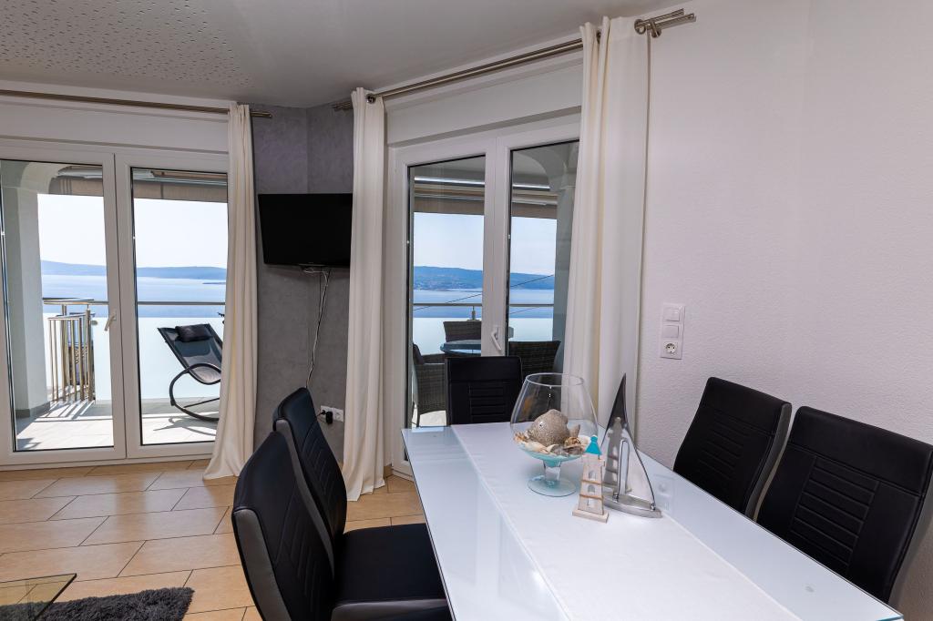 Ova moderna kuća s apartmanima savršen je izbor za odmor i život uz more. Smještena na mirnoj lokaciji u gradu, nudi privatnost i tišinu, dok je u blizini svih potrebnih sadržaja. Apartmani su moderni, opremljeni najnovijom tehnologijom i namještajem, a veliki prozori omogućuju prekrasan pogled na more. Unutrašnjost je minimalistička, s naglaskom na udobnost i funkcionalnost, pružajući idealno okruženje za opuštanje. Kuća se nalazi daleko od buke i gužve, ali s brzim pristupom centru grada. Iza kuće je prostor za roštiljanje, savršeno za opuštena okupljanja na otvorenom. Uz kuću su besplatna parkirna mjesta, što olakšava parkiranje bez stresa. Ova kuća nudi savršen spoj modernog života, privatnosti i prirodnog okruženja, s pogledom na more i svim pogodnostima koje bi poželio svaki posjetitelj.