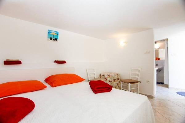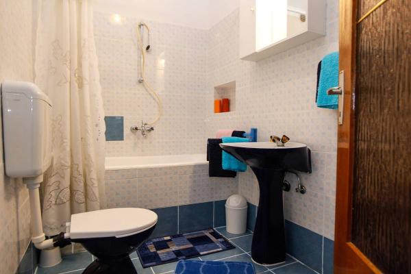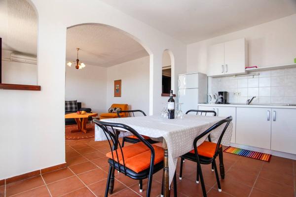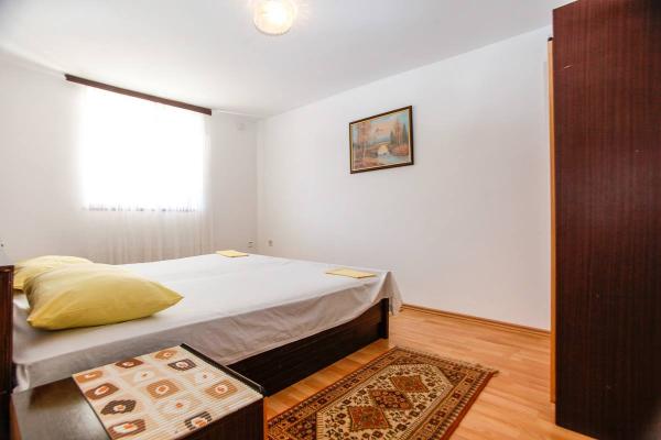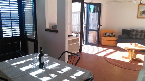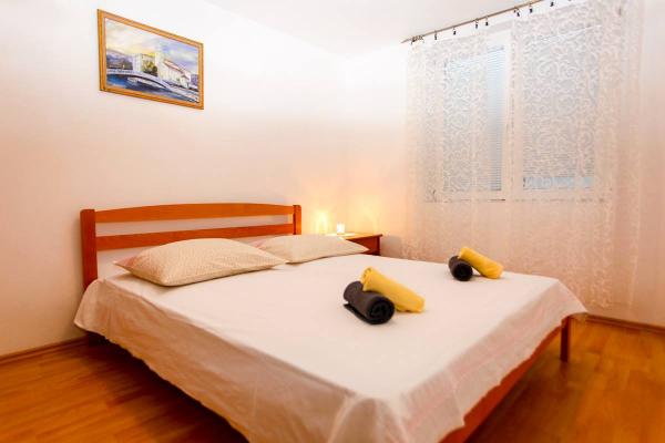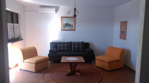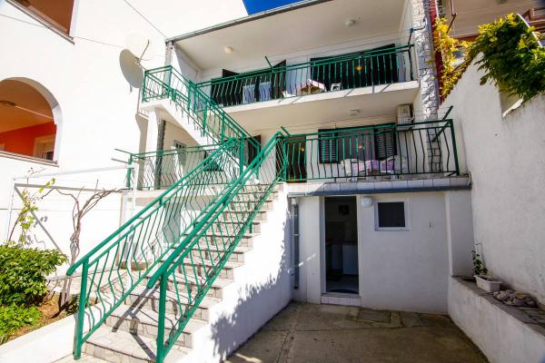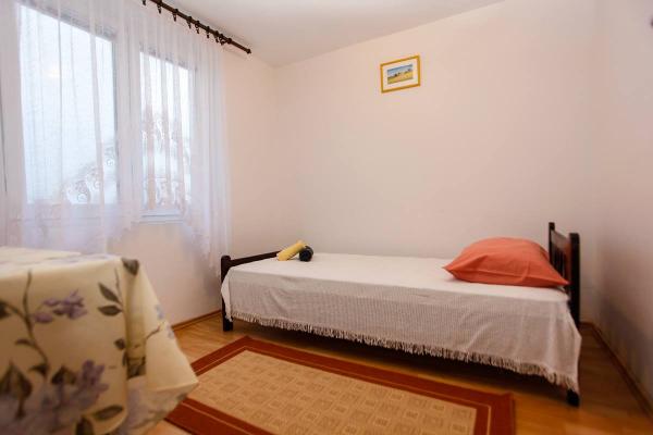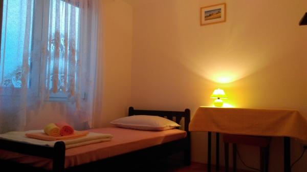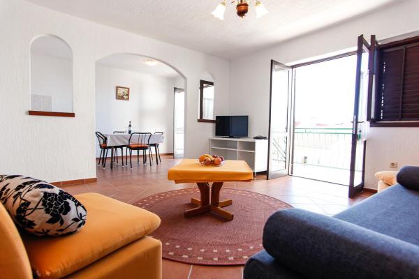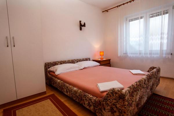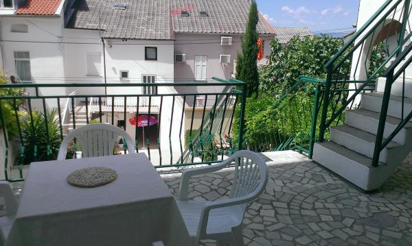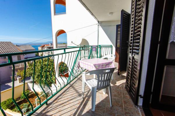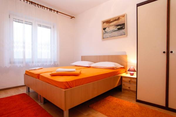 Kuća se nalazi na 3 minute hoda do plaže i promenade-šetnice, a 7 minuta do centra . Uređena okućnica, vrt. U kući se nalaze 2 komforna apartmana i 1 studio apartman s pogledom na vrt i otok Krk. Kategorizacija tri zvjezdice. 2 apartmana za 4-5 osoba i 1 apartman za 2 osobe. Svi APARTMANI komforno opremljeni sa terasom ili balkonom, SAT TV-om , Wireless Internetom, klima uređajem, uređenim kuhinjama. Apartmani nude mir i ugodan odmor.