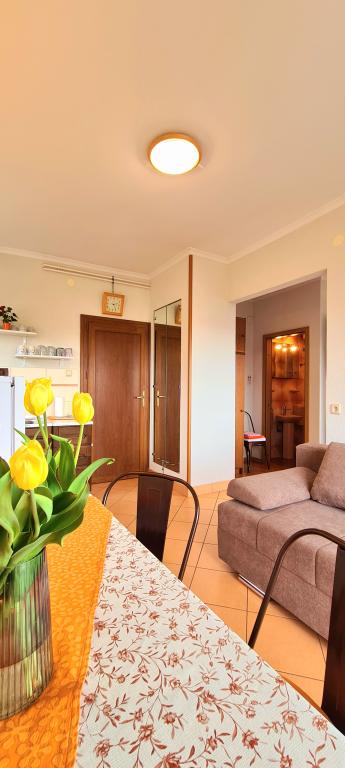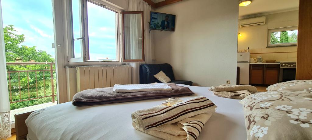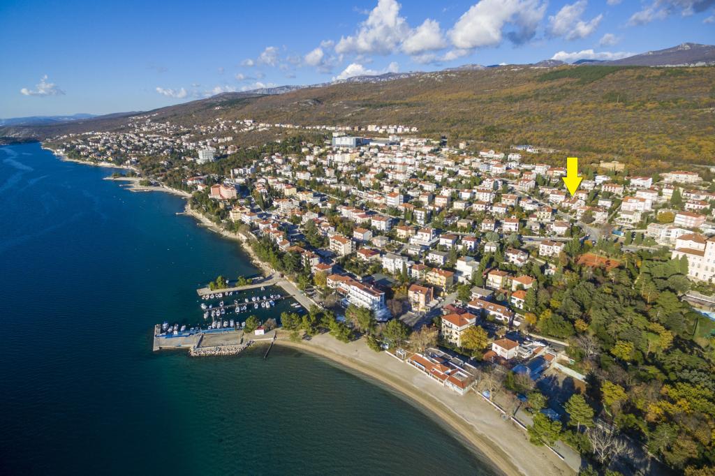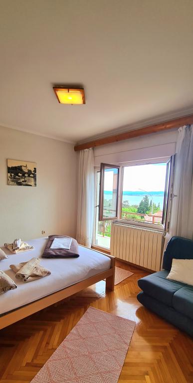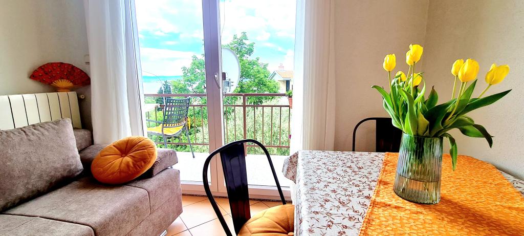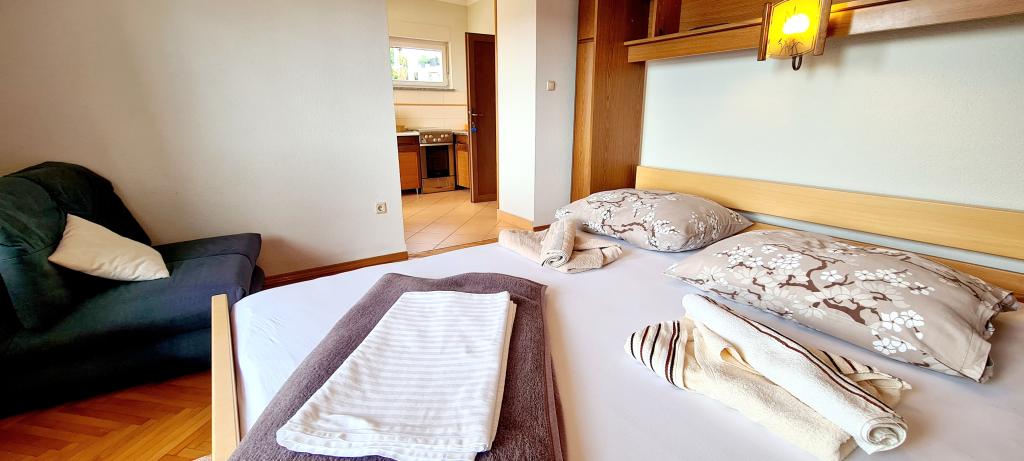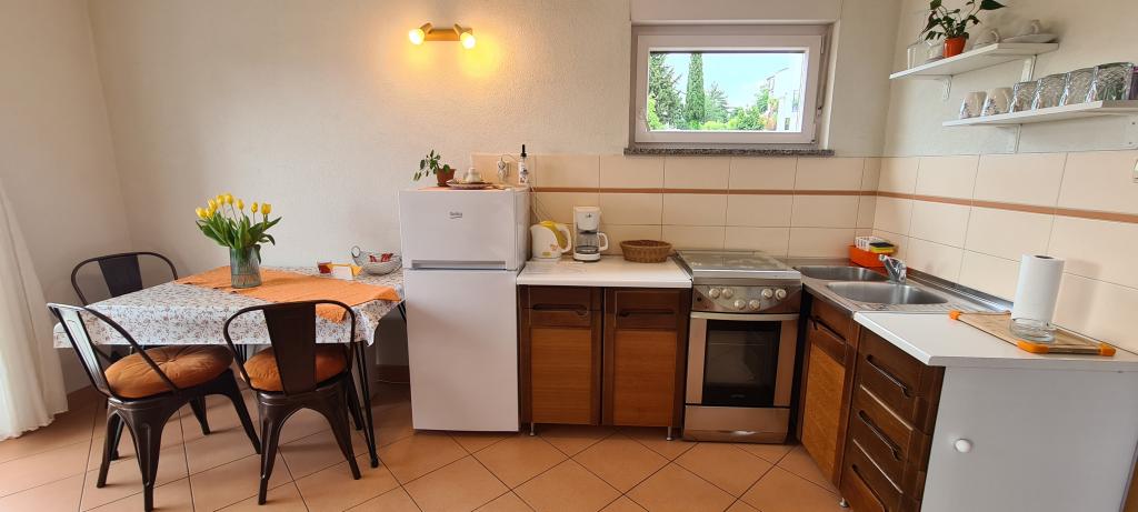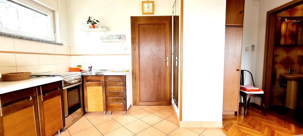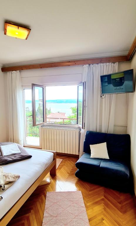 Dobrodošli u naše apartmane u Crikvenici! Apartman 2+1 nalazi se na adresi Tina Ujevića 8 u Crikvenici na 1. katu obiteljske kuće; sastoji se od dvije povezane prostorije – spavaće sobe sa kupaonom i WC-om i kuhinje. Ima balkon sa prekrasnim pogledom na more, a iza kuće i terasu koja se može koristiti. Pogodan za 2 + 1 osobe. U apartmanu je klima, TV Satelit i WI-FI. Parking je osiguran. U blizini su prekrasne pješčane i stjenovite plaže.