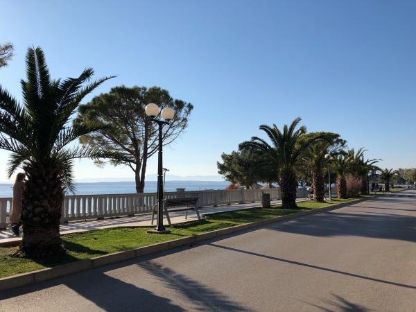 Lijep i čist apartman. Plaža je jako blizu i puno hladovine ima. Jedino što nije bilo perilice rublja ali ni mi nismo pitali da li ima. Dućani, ljekarne blizu. Strogi je centar pa je malo problem izaći s bebom s kolicima. Ali sve u svemu okej.