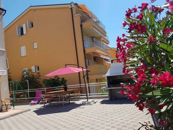 Turistička pristojba je uključena u cijenu.Svi apartmani su novogradnja, opremljeni su: klima uređajem, TV-om lcd ili led tv, wi-fi internetom, vlastite kupaonice, kuhinje (potpuno opremnjene sa beštekom, tanjurima, posuđem), posteljina, ručnici, ( mijenjanje nakon tjedan dana) roštilj u dvorištu, parking, pranje rublja na zahtjev i ako je potrebno sušenje rublja u sušilici na zahtjev. Posebno se plaća. 5€ App broj 1, 2 - 1 kat. App broj 1 ima pogled na more. App broj 3, 4, 5, 6 - prizemlje. App broj 6 ima malo pogleda na more, ostali app ne. App broj 5 je izdvojen, ima pogled na vrt i zasebnu terasu. Želimo Vam ugodan odmor i boravak.