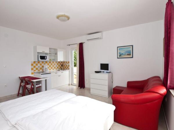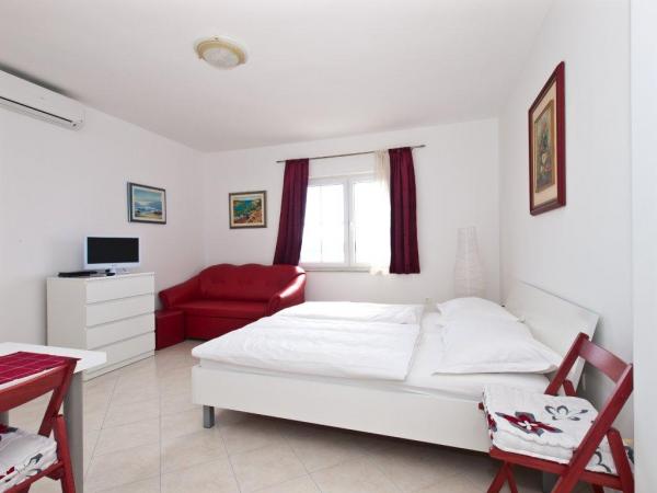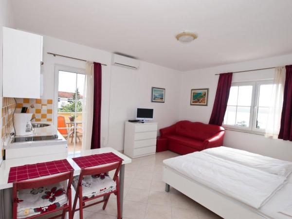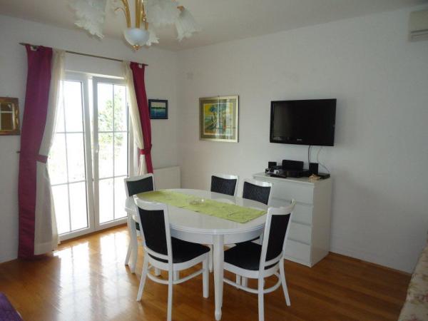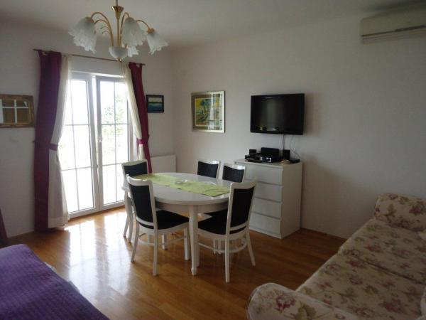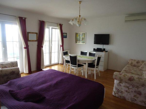 Turistička pristojba je uključena u cijenu.Miris ružmarina, sočna smokva u vrtu i zalazak sunca koji oduzima dah! Ovi apartmani s dušom mediterana nalaze se u mirnom dijelu Crikvenice, dragulja Kvarnerskog zaljeva. Romantično, udobno, idealno za zaljubljene ali i obitelji s djecom. Svi apartmani imaju pogled na more, centralno grijanje, LCD TV, WiFi, klima uređaje..... Vrt koji se prostire na oko 600m2 nudi zabavu i odmor. Tako možete uživati u hladovini rodne smokve ili uz bazen promjera 4,5 metara sa sunčalištem na kojem od jutra do večeri naši gosti traže osvježenje a djeca zabavu. Gastronomska ponuda ne izostaje jer osim što se samo možete pozabaviti spravljanjem roštilja, ljubazni domaćini rado će Vam na zahtjev pripremiti morske specijalitete kao što je hobotnica pod pekom,