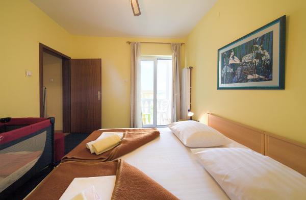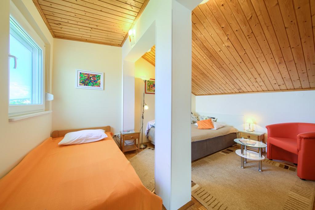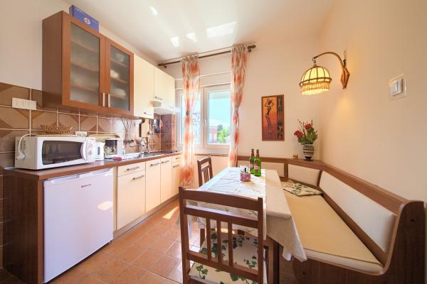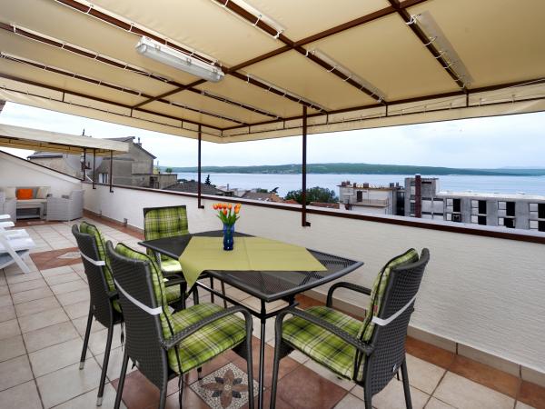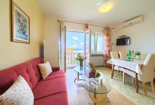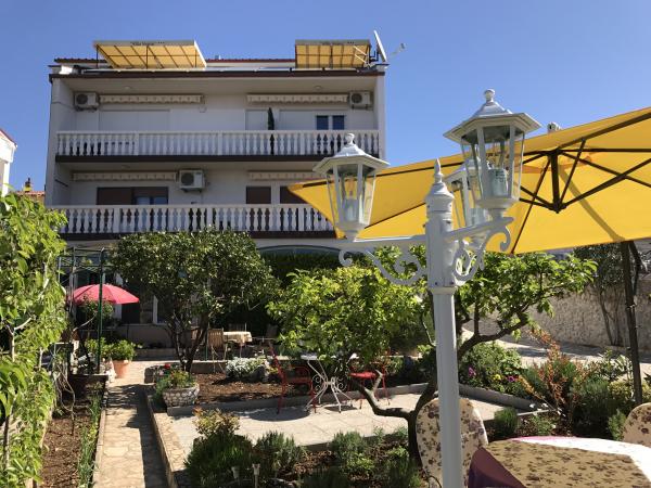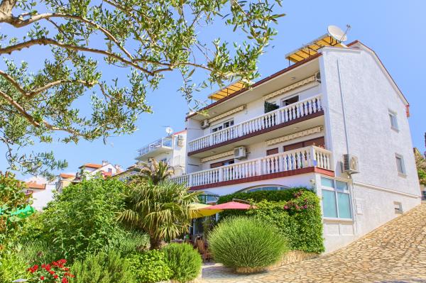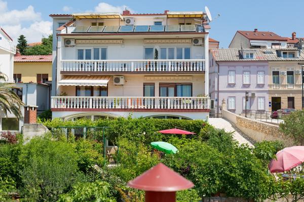 Ograđena vila u centru Crikvenice, u drugom redu do mora, 3 minute hoda do plaže i promenade-šetnice, a 5 minuta do centra. Uređena okućnica, vrt sa grilom i kaminom za goste a parkiralište zaključano. U kući se nalaze 4 komforna apartmana sa pogledom na more, gradske vrtove i otok Krk. Kategorizacija tri i četiri zvjezdice. 3 apartmana za 4-5 osoba i 1 apartman za 2- 3 osobe. 4 zvjezdice. Svi APARTMANI komforno opremljeni sa vlastitom terasom ili balkonom. , SAT TV, Wireless Internetom, klima uređajem, sigurnosnim sefom za novac i dragocijenosti, uređenim kuhinjama sa svim uređajima i mogućnošću korištenja vrtnog grilla. Dani otvorenosti od 1.05.-30.09. svake godine. Zimski period otvorenosti: na poseban zahtjev, apartman za 4 osobe i apartman za 2 osobe sa centralnim grijanjem, balkoni i pogled na gradske vrtove i otok Krk.