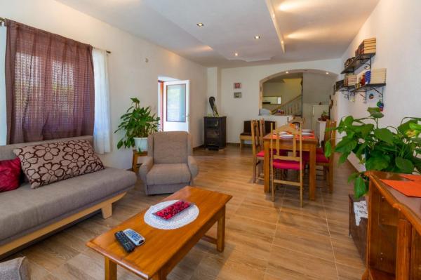 Renovirana kuća u Vinodolskoj Općini - mjesto Drivenik - sastoji se od prizemlja ( dnevni boravak sa blagavaonicom, kuhinjom i kupaonom - 40 m2) i prvog kata na kojem se nalaze 3 sobe od kojih dvije sobe imaju izlaz na terasu. 2 sobe imaju krevet veličine ( 180 x 200 cm ), a 1 soba ima krevet veličine 90 x 200 cm. Sa terase se pruža predivan pogled na veliku livadu kao i na planine u blizini. Samo 300 m od kuće nalazi se sletište za paraglajdere, dok se na udaljenosti od samo 3 minute od kuće nalazi jezero Tribalj na kojem je moguć ribolov, a u blizini i najam konja. Dvorište je ograđeno zidom i željeznim vratima. U dvorištu se nalazi roštilj sa pripadajućim stolom i stolicama. Parkiranje je ispred kuće, na javnoj površini. Vlasnik stoji na raspolaganju za sva dodatna pitanja.