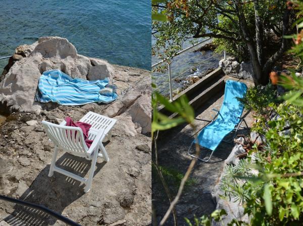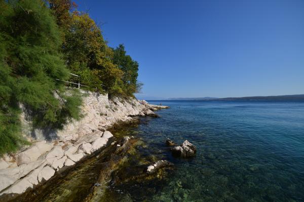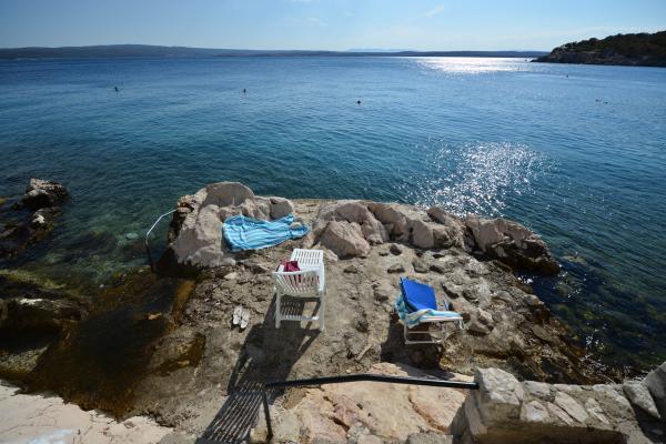 Kamena kuca kompletno renovirana nalazi se na samoj obali mora. Namijenjena je za boravak 6 do 8 osoba. U prizemlju kuće nalazi se kuhinja, dnevni boravak sa blagavaonicom, spavaća soba sa dva kreveta i kupaonica. Na katu kuće nalaze se dvije spavace sobe i kupaonica.Tri terase od kojih je jedna natkrivena nude prekrasan pogled na more i otok Krk. Objekt okružuje mediteranski vrt. Osiguran je parking za dva automobila unutar dvorišta. Gostima se nudi na korištenje roštilj i vez za čamce koji se nalazi ispred kuće.