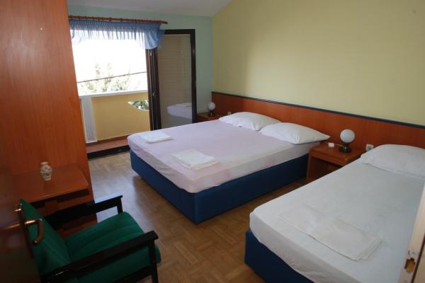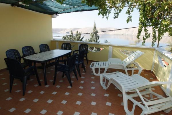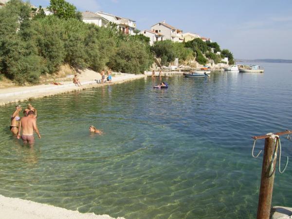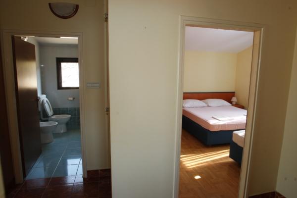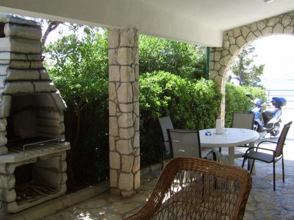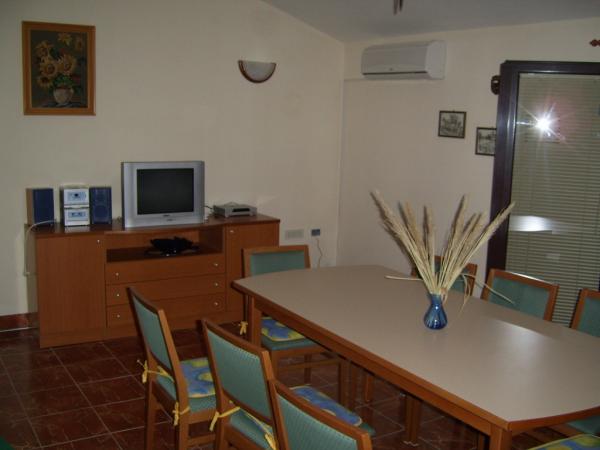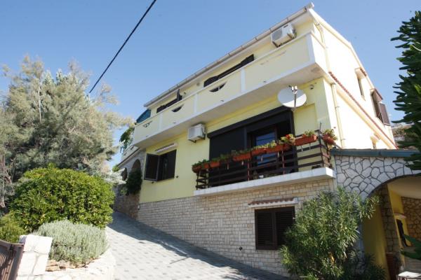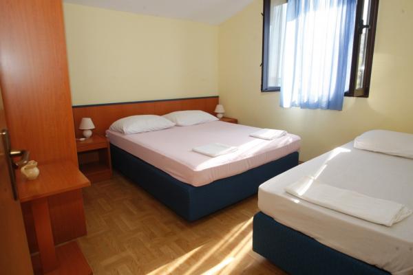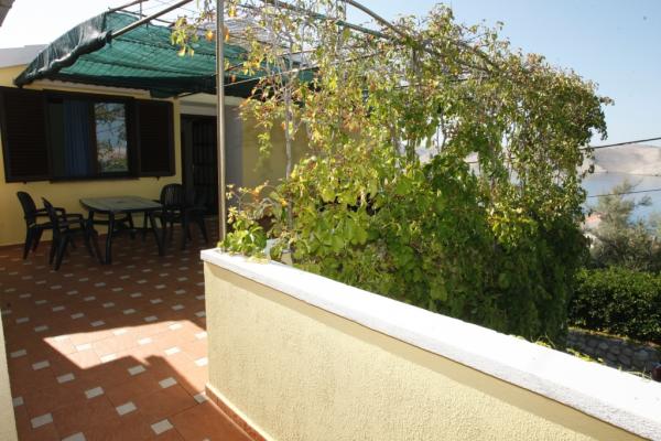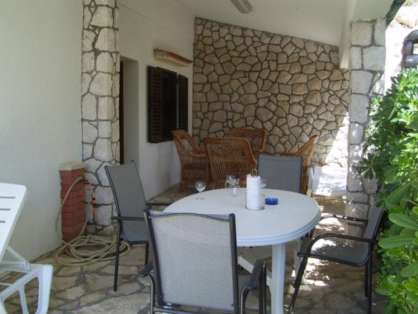 APP 1 / 8 + 1 Kompletno i suvremeno opremljen Apartman od 110 m 2 s terasom od 50 m ( natkrivena prirodnim hladom i tendom ) a Apartman je udaljen 50 metara od mora / plaže. Apartman ima tri trokrevetne sobe i veliki dnevni boravak s balkonom te dvije kupaonice i dvije kuhinje a na terasi su dva velika stola i 6 ležaljke. Apartman je u kući ( poseban kat ) u kojoj se nalazi i vlasnik u svom stanu na parceli od 8.ooo m 2 što čini boravak kao da ste u vlastitoj kući a pogodan je za boravak kako odraslih tako i djece koji imaju veliki prostor za igru i druženje. U sklopu Apartmana na terasi je i posebna kućica s kanimom i ljetnom kuhinjom. APP 1 / 4 Kompletno i suvremeno opremljen APP od 40 m 2 s natkrivenom terasom cca 30 m 2 sa grilom i dvije ležaljke. App ima jednu spavaću sobu za 2 osobe a 2 osobe spavaju u dnevnom boravku.