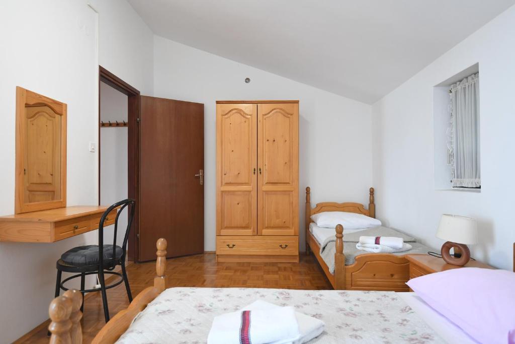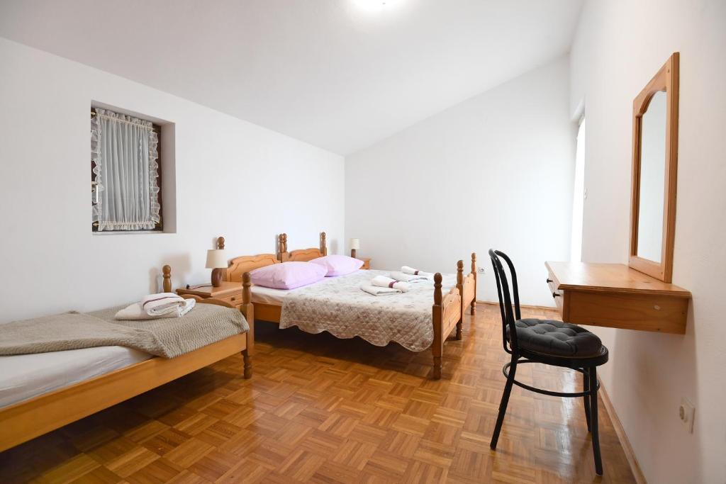 Apartmani Erna kompleks je od 3 apartmana u kući. Apartmani su komforni i opremljeni klima uređajem. Apartman A1 nalazi se u prizemlju objekta, sastoji se od 3 spavaće sobe, kuhinje, WC-a, blagovaonice i dnevnog boravka. Kuhinja je potpuno opremljena. U sobama se nalaze bračni kreveti, kako je prikazano na slikama. Apartmani A2 i A3 nalaze se na drugom katu objekta. Svaki apartman ima dvije spavaće sobe, a svaka spavaća soba ima vlastiti balkon. Kuhinje su u ovim apartmanima potpuno opremljene, a sa balkona se pruža prekrasan pogled na more. U sklopu objekta nalazi se kućica prikladna za roštiljanje i uživanje. Parking je osiguran, parkirna mjesta nalaze se u prirodnoj hladovini. U mjestu se nalaze se dvije plaže, pješčana i šljunčana, također prikazane na slikama. U mjestu se nalazi crkva, restoran, te dva kafića. U mjestu, kao i na cijelom otoku, održavaju se brojne manifestacije koje naš otok čine sadržajnijim, pružajući našim gostima pravi doživljaj mora.