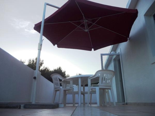 Apartmani s osnovnom opremom i prostranim terasama (minimalna površina terase 14 m2). Apartmani su smješteni na prvom katu obiteljske kuće u malom i tihom mjestu Dobropoljana na otoku Pašmanu. Objekt je u blizini plaže (samo 2-3 minute hoda), a do centra mjesta je tek 5 minuta hoda.