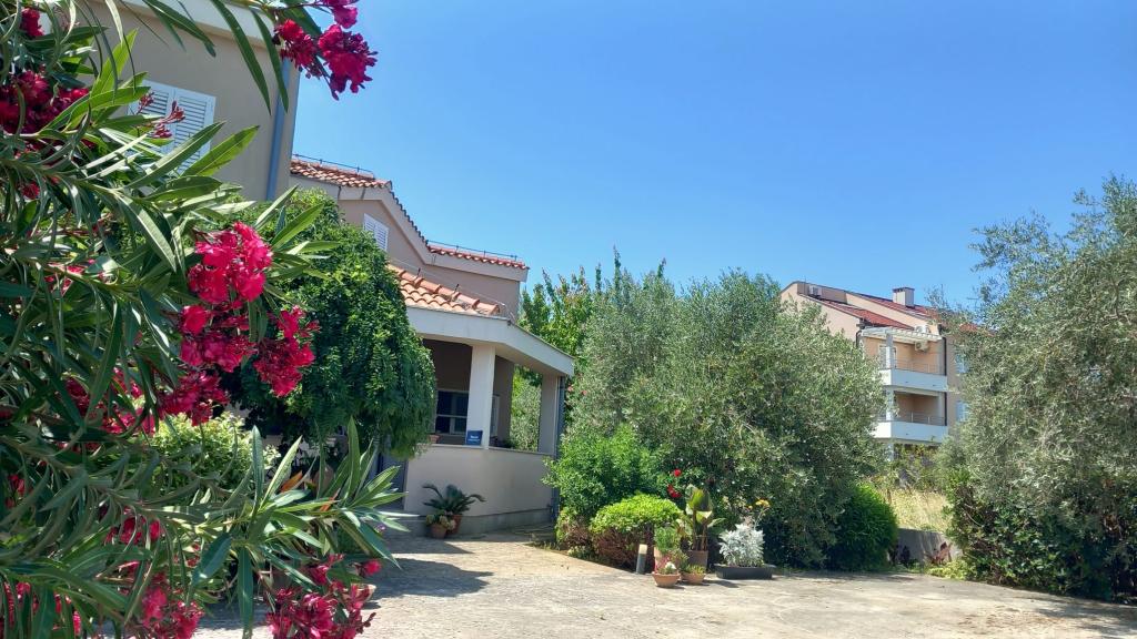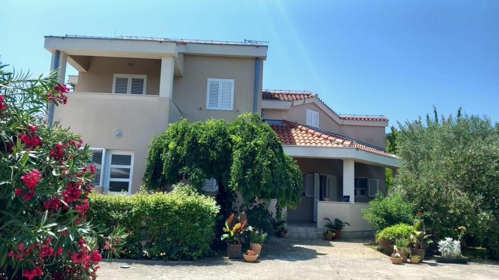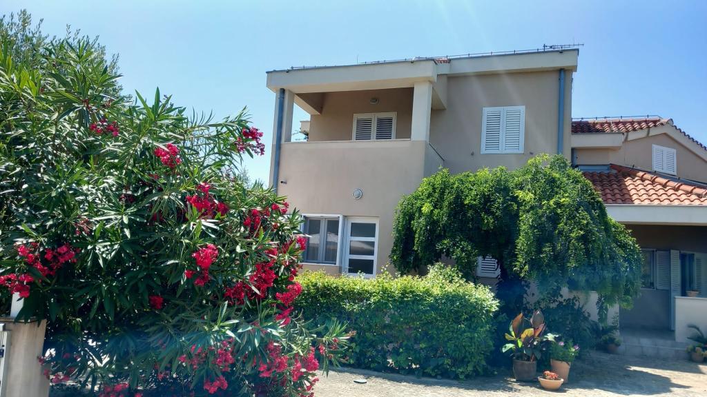 Vila s 3 apartmana Karla. Mirno, sunčano mjesto, 100 m od mora, 100 m od plaže. Za zajedničko korištenje: bazen pravokutni (8 x 4 m, 135 cm dubok, 15. 04. -14. 10. ) s unutarnjim stepenicama. Roštilj. U kući: pristup internetu. Prostran i siguran parking uz vilu na parceli. Trgovina, restoran 700 m, cafe 100 m, pješčana plaža 800 m, plaža s oblucima, šljunčana, stjenovita plaža 100 m. Apartmani su novo uređeni, klimatizirani te u potpunosti opremljeni za idelan odmor. Apartman 1, u prizemlju s platoom i garniturom za boravak na otvorenom, pogled na more. Apartman 2, na katu, natkrivena terasa s garniturom, prekrasan pogled na more.