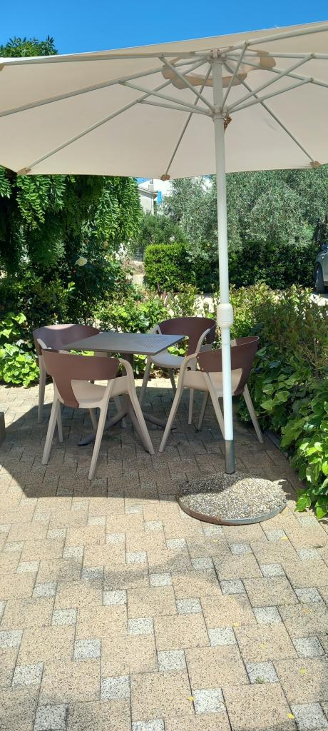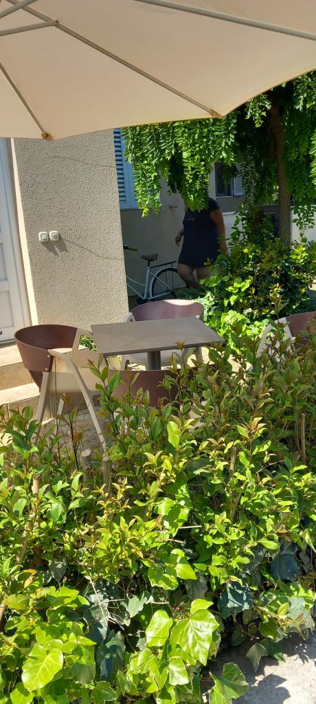 Sve je kao na slikama, apartman je dobro opremljen, uredno je i čisto, lijepa terasa kao i cijelo dvorište s puno zelenila i hlada. Bazen je odličan, održavan, djeca su ga obožavala. Predivni domaćini uvijek na raspolaganju i jako ljubazni. Plaža je na 1 min hoda, kamena. Mi smo zbog djece išli na malo dalju plažu koja je pješčana. Sve preporuke! Sigurno se opet vraćamo.