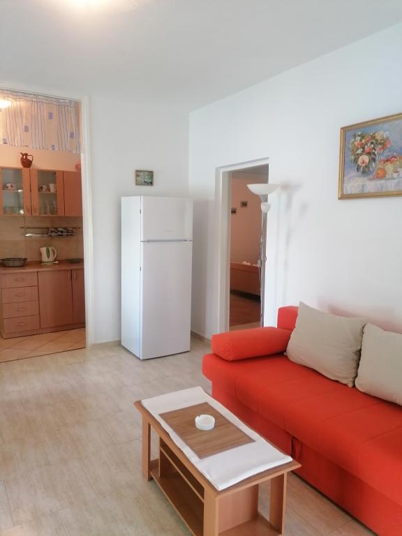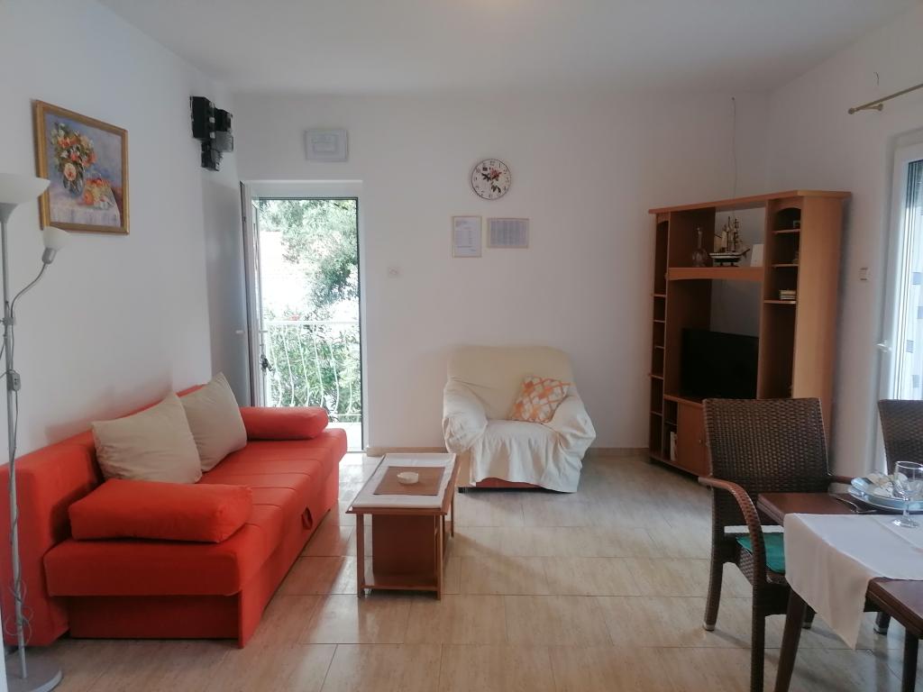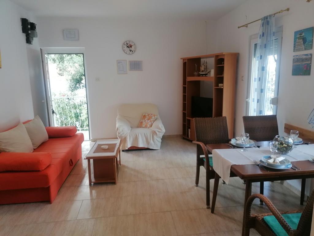 Apartman je vrlo dobro opremljen, nalazi se u sjeni borova, vrlo blizu plaže i mora, čist i s prekrasnim pogledom na more i planine s dugog balkona. Domaćica je jako ljubazna, ljubazna i uvijek spremna pomoći. Toplo ga preporučujem za miran, izvrstan odmor.