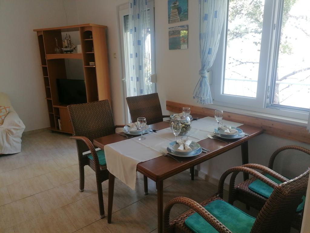 Apartman je odličan. Lokacija je odlična. Kuća ima vlastiti parking Ima veliki dnevni boravak, kuhinju, dvije spavaće sobe, kupaonicu i veliku terasu. Kuhinja je potpuno opremljena. Sve je kao što piše u opisu apartmana. Terasa ima lijep pogled na more i Velebit. Možete vidjeti plažu i borovu šumu ispred kuće. Domaćini su ljubazni. Plaža je fantastična,svega 50 stepenica od apartmana. Preporučujemo ako želite uživati u miru i tišini. Nema prevelike gužve. Mjesto za uživanje. Voda je odlična za kupanje i ima dosta plićaka, baš za djecu. Vraćamo se i sljedeće godine!!!