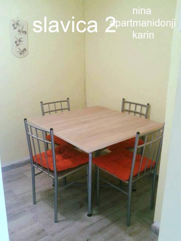 Bio je to naš prvi odmor u Karinu Donjem. Već kod dolaska osjetili smo da je to mjesto za odmor koje smo željeli. Sva očekivanja ostvarila su se dolaskom u apartman Nina. U apartmanu vlada pravi domaći ugođaj. Sa terase se pruža prekrasan pogled na more. Gđa. Svjetlana je vrlo ljubazna i profesionalna. Ovaj odmor ostat će nam u lijepom sjećanju, u nadi da i slijedeće godine uživamo u prekrasnom mjestu i apartmanu Nina.
