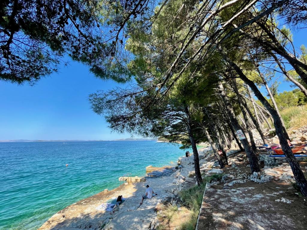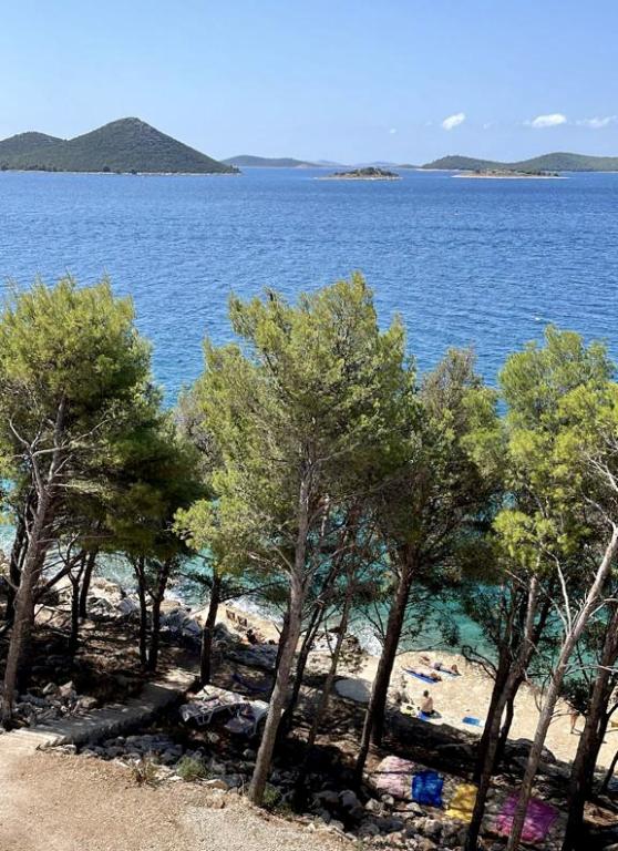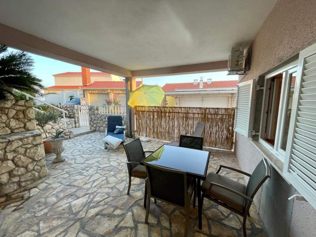 Kompletno opremljen apartman (wifi, klima) u mirnom vikendaškom naselju Dolaška Draga (Drage), pored Pakoštana. Apartman 2+2, cca 45m2, s velikim dvorištem, nalazi se u prizemlju višekatne kuće za odmor, smješte drugi red do mora, ali kao da je prvi. Predivan pogled seže na manje otočiće, Artu Velu, Artu Malu, Vrgadu te na NP Kornate. Parkirno mjesto je osigurano uz kuću ili na parkingu 10m od kuće. Prva plaža, odmah ispod kuće (20m) je betonska (kameni platoi) odnosno stjenovita, s osiguranim prilazom u more (stepenice, skakaona) te prirodnim hladom koji stvara predivna borova šumica, kroz koju se proteže šetnica do druge plaže (150m) sa sitnim šljunkom. Idealno za djecu! Tamo se nalaze i razni sadržaji (restoran, kafić, igralište za djecu). Do te plaže može se doći pješke, ili autom kroz naselje, kao i do treće plaže sa sitnim šljunkom (300m). Ova predivna oaza smještena je između Zadra (30km) i Šibenika (30km). U neposrednoj blizini nalazi se PP Vransko jezero (2km).