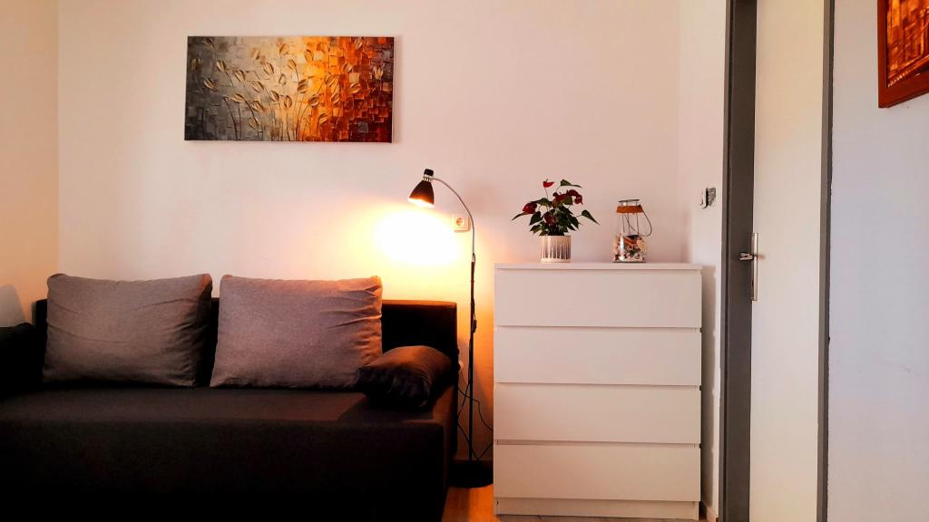 Ostali smo ovdje sa sedam ljudi bez ikakvih problema. Vrlo velik i lijep stan, ali smješten na prometnoj glavnoj cesti. Ispod naše terase nalazi se trgovina mješovitom robom, često ga koriste vozači (prilično bučno). Nasuprot je još jedna trgovina mješovitom robom, gdje se mještani opet sastaju i također nisu mirni. Iza kuće ima dovoljno mjesta za nekoliko vozila, koja se mogu mirno i sigurno parkirati. Ipak, nije mi bilo lijepo što su ispod balkona hrpe starog otpada i mlina, nema lijepog pogleda. Apartman je bio jako dobro opremljen, primijetili smo da nema aparat za kavu (imali smo svoj Senseo pa nam nije smetao). Vlasnik kuće je bio jako ljubazan. Komunikacija bez muke. Kratki sažetak ako tražite prostran i čist stan, ovo je mjesto za jesti, ali ako želite sjediti vani u miru navečer, ovo nije mjesto za vas. Stoga samo 3 zvjezdice