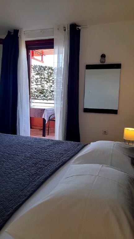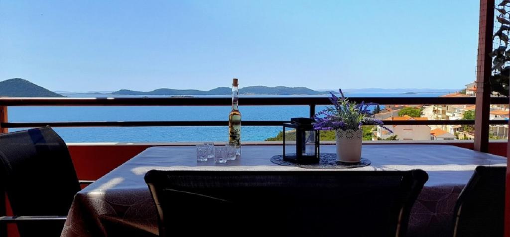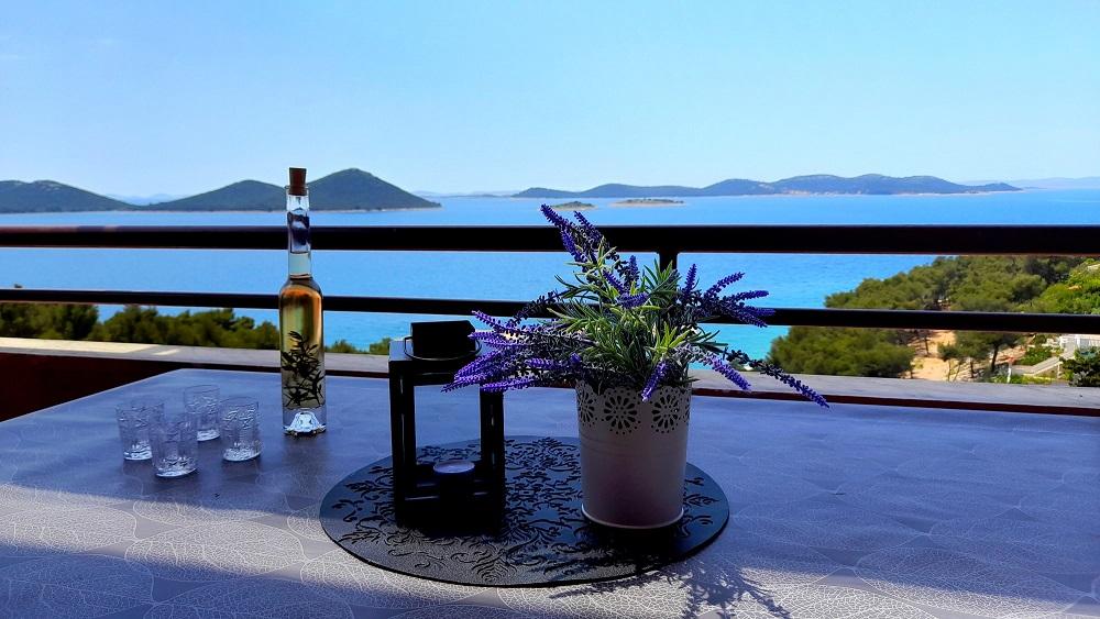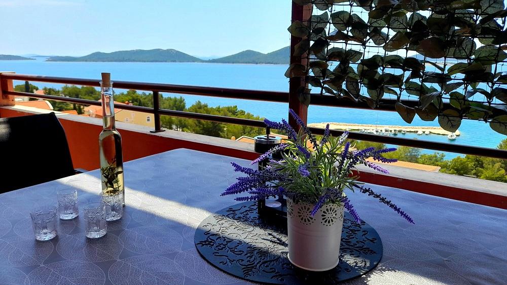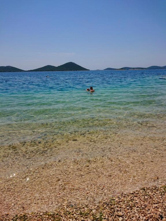 Apartman Mima smješten je u mjestu Drage, u uvali Dolaška draga, u kojoj se nalazi velika šljunčana plaža i bezbroj malih kamenom popločanih plaža okruženih gustom borovom šumom koja osigurava prirodni hlad. Gosti na raspolaganju imaju i predivnu šetnicu „lungo mare“, park za djecu i više ugodnih kafića. Apartman se nalazi na drugom katu i pruža spektakularan pogled na Kornatski arhipelag. Od plaže je udaljen 300 m. Apartman ima jednu spavaću sobu, kupaonu, kuhinju sa dnevnim boravkom u kojem se nalazi kutna garnitura na razvlačenje i balkon s kojeg se pruža predivan pogled na more. Gosti na raspolaganju imaju klima uređaja, wifi flat Internet, perilicu posuđa, mikrovalnu… Parking mjesto je osigurano ispred apartmana.