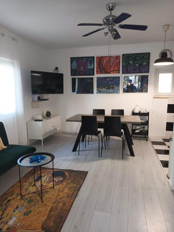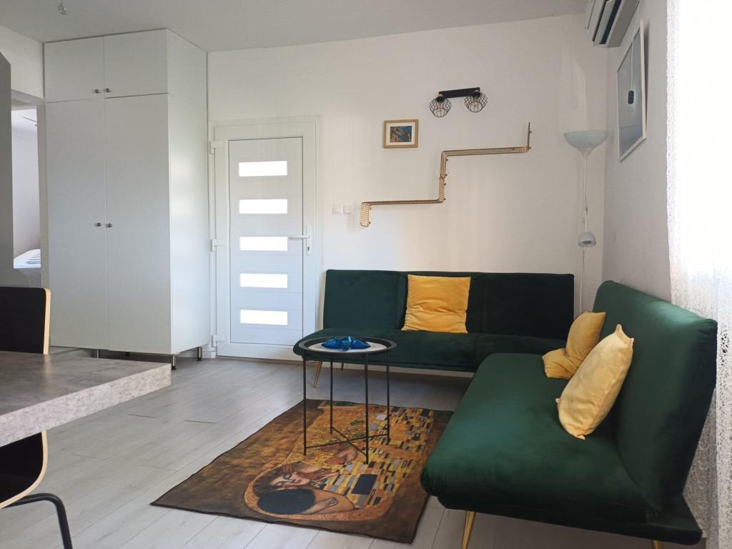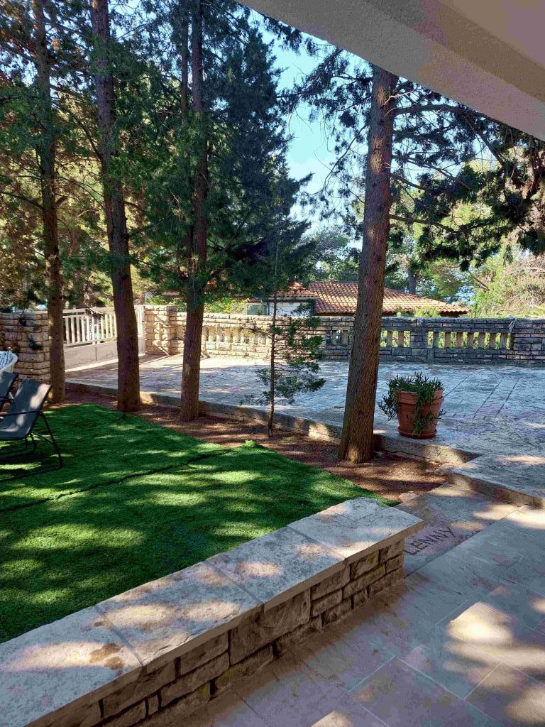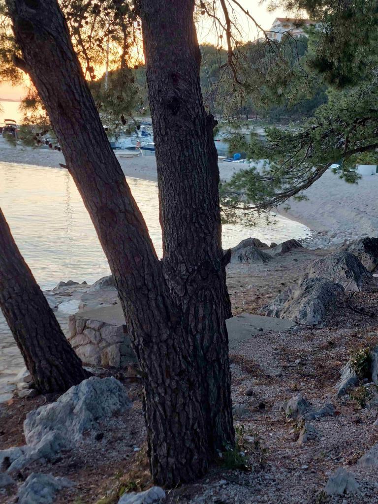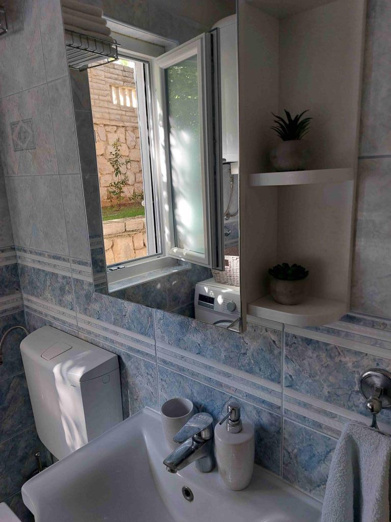 Uživajte u našem potpuno novouređenom apartmanu u hladu terase s pogledom na čisto more! Apartman se nalazi u prizemlju vile i okružen je velikim, sjenovitim dvorištem u prvom redu do mora. Popodnevnu vrućinu provedite u našem mirisnom vrtu ispijajući hladne koktele, čekajući najljepši zalazak sunca! Kod nas Vam je sve pri ruci - piće u obližnjem beach baru, večera u pizzeriji pokraj, svakakve aktivnosti na plaži, čitanje knjige u hladovini starih borova pokraj mora, dječje igralište u hladu, osvjetljena šetnica uz more. Ne brinite za parkirno mjesto - osigurano je za Vas u dvorištu. Kako smo veliki ljubitelji životinja, tako su i Vaši kućni ljubimci dobrodošli!