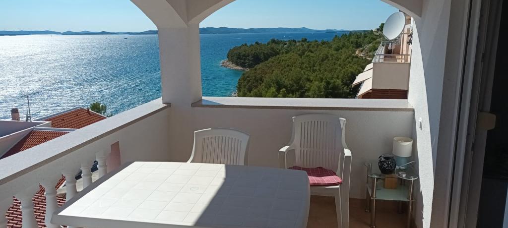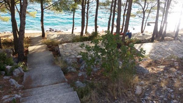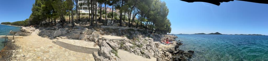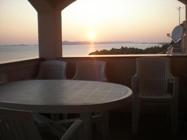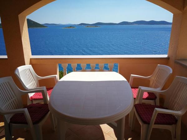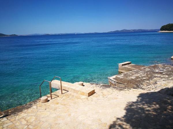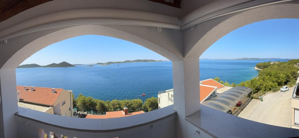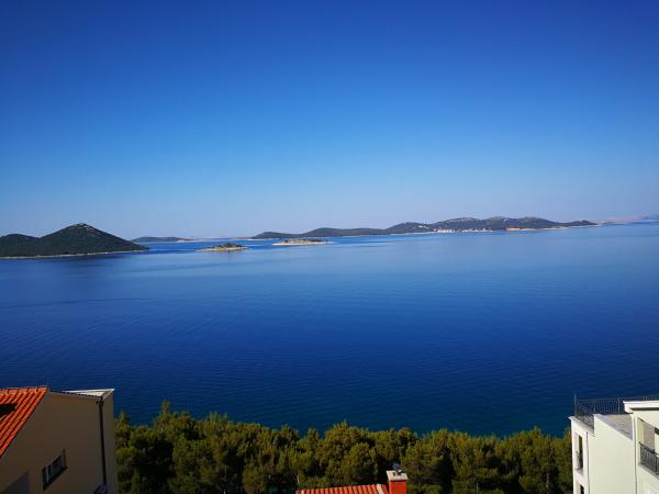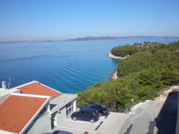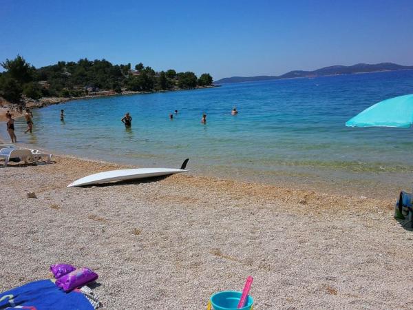 Kompletno i moderno opremljeni apartmani se nalaze novosagrađenoj kući, na krajnjem najmirnijem djelu uvale, svega 30m udaljenoj od mora. Prava oaza mira i tišine sa biserno čistim morem. Od kuće do naše popločane plaže se direktno silazi stepenicama. Plaža je u neposrednoj blizini borove šume sa platoima za ležanje. U susjednim uvalicama se nalaze i dvije veće šljunčane plaže te još mnoštvo manjih i većih popločanih i stjenovitih plaža. Svi apartmani imaju grandiozan pogled na more(kornatski arhipelag). Kuća ima i veliku zajedničku terasu(100m2) sa kamenim grilom te velikim pogledom na more. Posjedujemo garažu za 4 automobila i 4 parking placa uz kuću. Mogućnost šetnje u borovoj šumi uređenom stazom uz more , osvijetljenoj navečer. Do trgovine i restorana 15 minuta hoda.