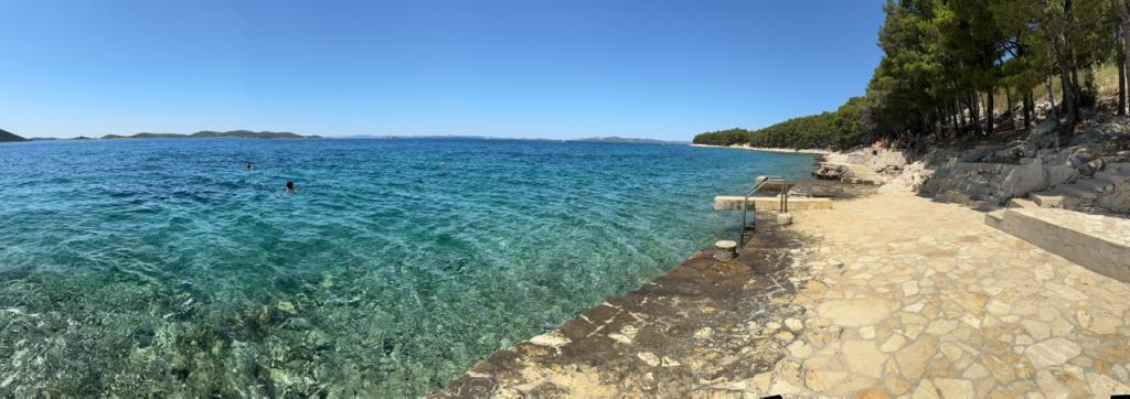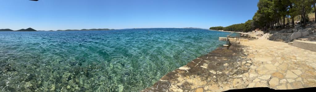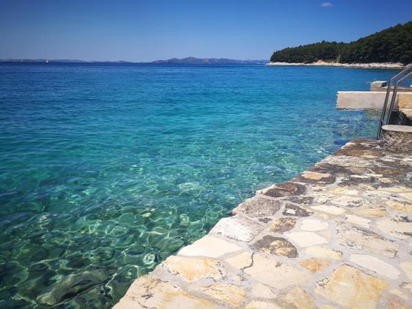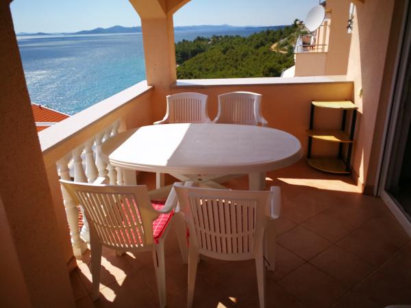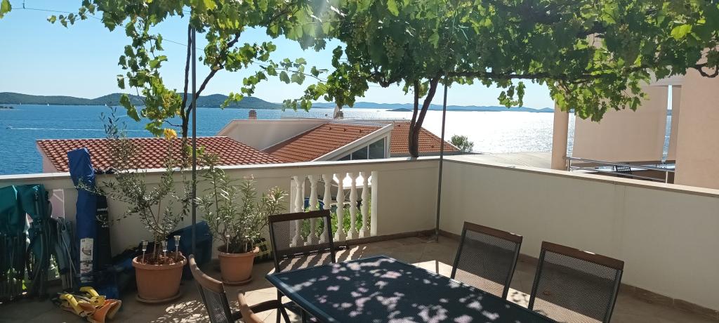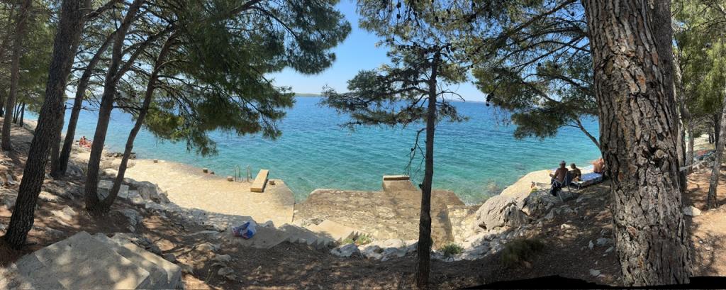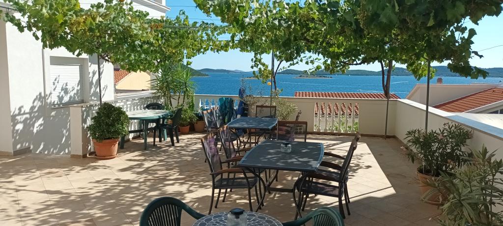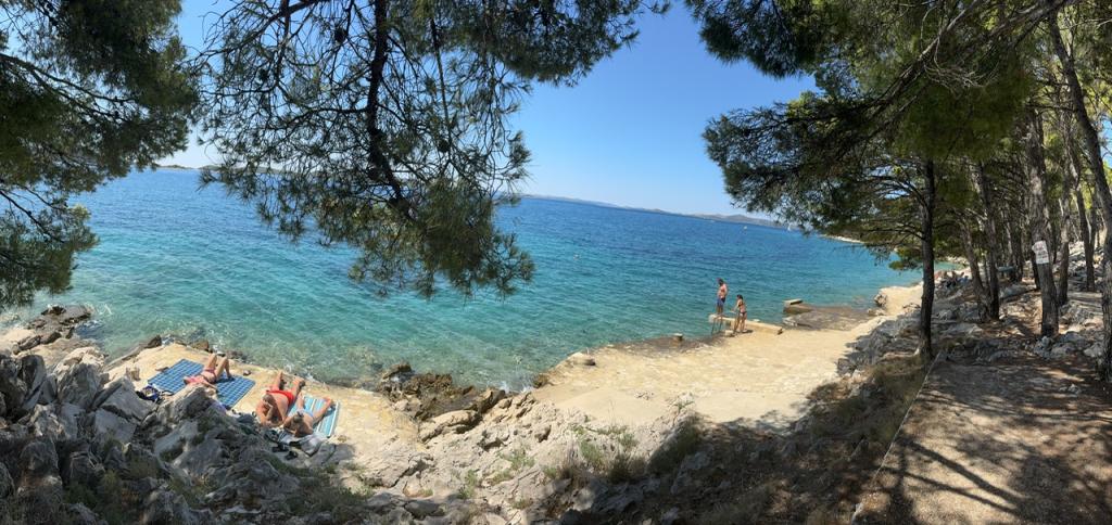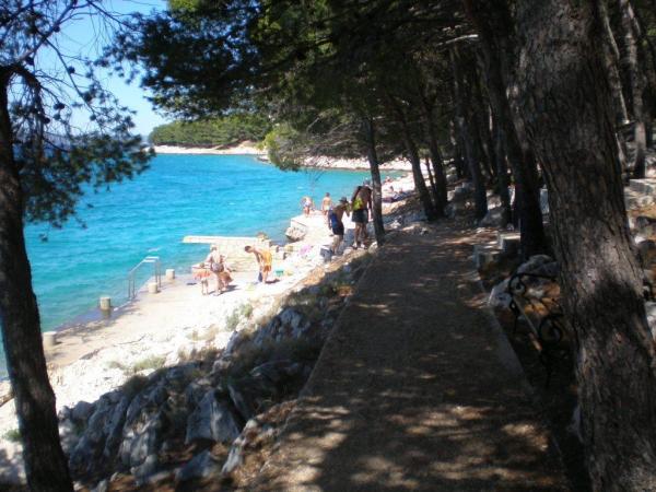 Kompletno i moderno opremljeni apartmani se nalaze novosagrađenoj kući, na krajnjem najmirnijem djelu uvale, svega 30m udaljenoj od mora. Prava oaza mira i tišine sa biserno čistim morem. Od kuće do naše popločane plaže se direktno silazi stepenicama. Plaža je u neposrednoj blizini borove šume sa platoima za ležanje. U susjednim uvalicama se nalaze i dvije veće šljunčane plaže te još mnoštvo manjih i većih popločanih i stjenovitih plaža. Svi apartmani imaju grandiozan pogled na more(kornatski arhipelag). Kuća ima i veliku zajedničku terasu(100m2) sa kamenim grilom te velikim pogledom na more. Posjedujemo garažu za 4 automobila i 4 parking placa uz kuću. Mogućnost šetnje u borovoj šumi uređenom stazom uz more , osvijetljenoj navečer. Do trgovine i restorana 15 minuta hoda.