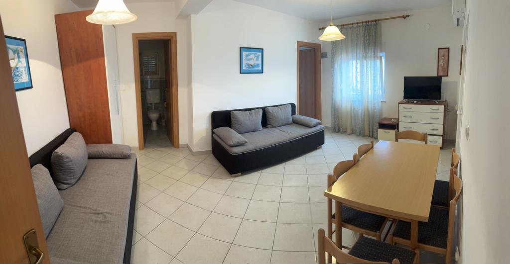Smjestaj je odličan, pogled prekrasan, ambijent predivan, zaista sve pohvale! Apartman uredan, čist, moderan, sve najljepse imamo za reći. Svaki apartman je klimatiziran, domaćini redovito održavaju sve, ljubazni i gostoljubivi! Plaža je vrlo blizu, najbliži kafić je 5 min lagane šetnje stazom uz šumicu. Preporučam svakome, a pogotovo obitelji sa djecom!