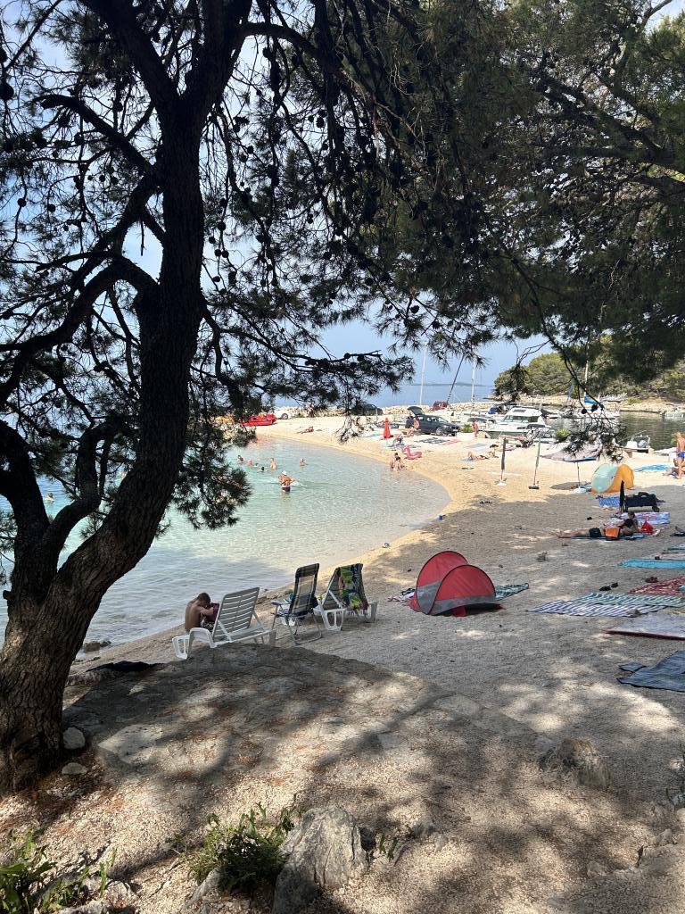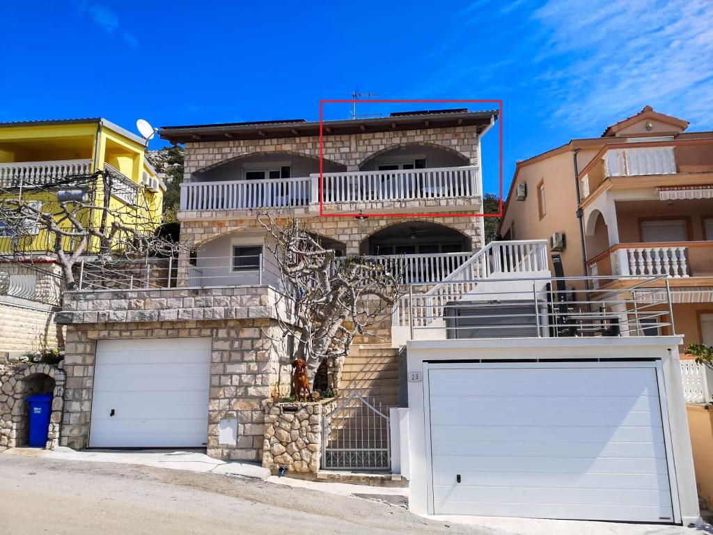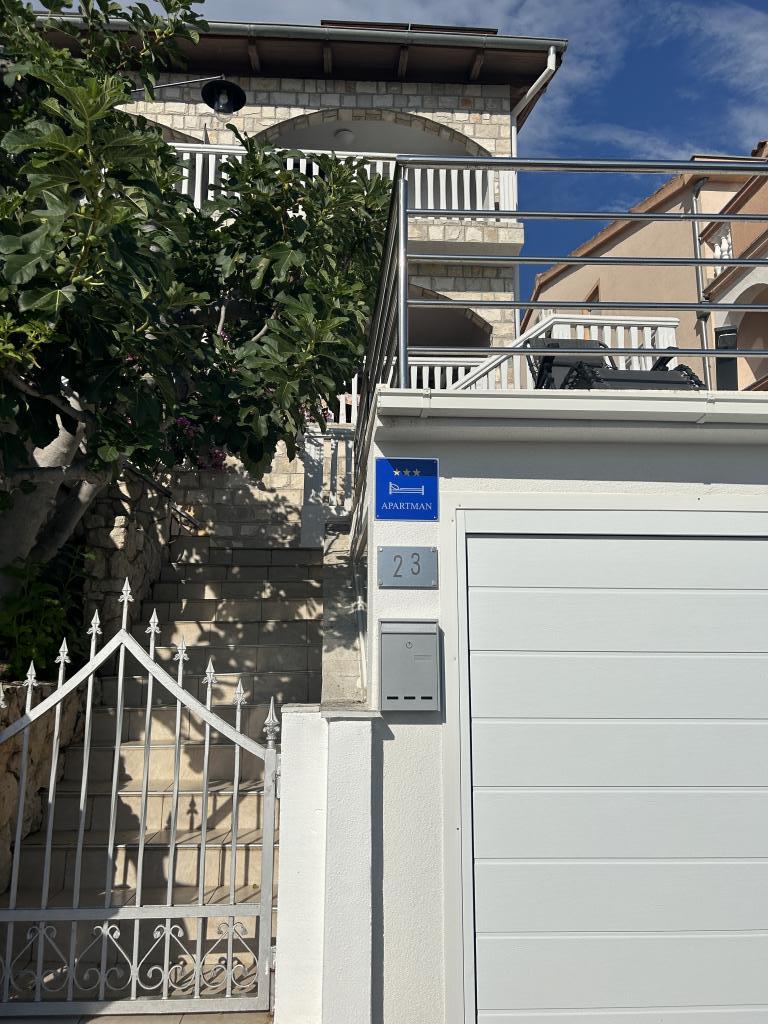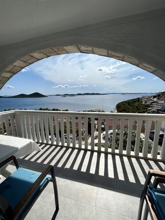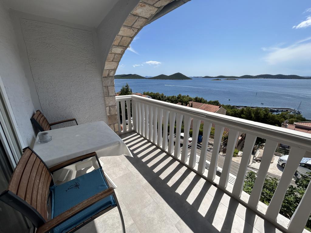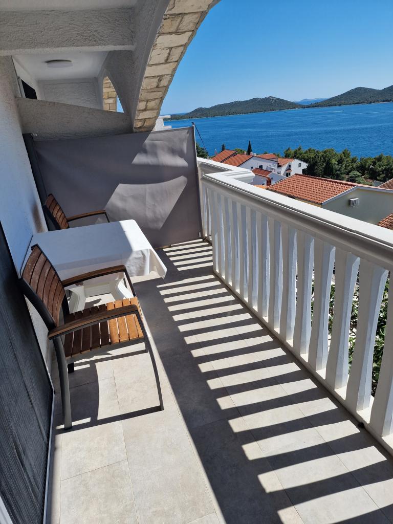 Apartman s prelijepim pogledom na more i predivne mnogobrojne otoke. Iza apartmana se nalazi terasa sa uređenim vrtom i zajedničkim grillom. Do plaže ima 3 minute pješačenja. Uz obalu se nalazi gusta borova šuma sa kamenom i šljunkovitom (za djecu) plažom. Uz plažu se nalazi i beach bar te restoran-pizzerija i pekara. Trgovina je udaljena 300 metara svega, 5 minuta pješačenja. Park prirode Vransko jezero nalazi se na 1500m udaljenosti. Mogućnost iznajmljivanja cijele godine.