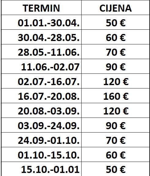 Turistička pristojba je uključena u cijenu.