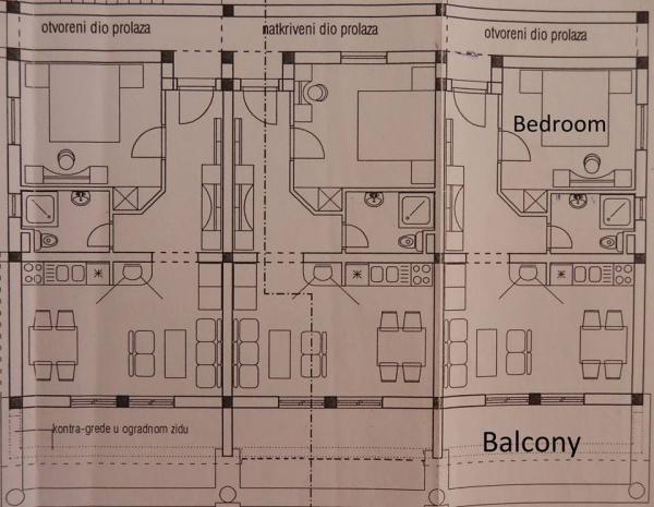 Apartmani su udaljeni 50ak metara od mora. Svaki apartman ima izlaz na terase, pogled na more i svu potrebnu opremu za cijelodnevni, ugodan boravak.