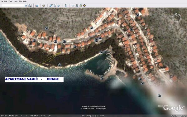 Apartmani Nakić, nalaze se u naselju Dolaška draga. To je prekrasna mala uvala koja je udaljena od magistrale i prometa, u svoj svojoj ljepoti je vidljiva sa mora. Svi apartmani su opremljeni sa svime potrabnim za ugodan boravak, kao što je klima, bežični internet SAT TV i ostalo. Kraj kuće je gril dostupan za kprištenje. Također svi apartmani imaju velike terase sa direktnim pogledom na more i otoke, naime kuća se nalazi u prvom redu do mora i naše plaže. Naravno da gosti mogu birati plažu koju žele i na kojoj seugodno osječaju. U hladu borove šumice po cijeloj uvali nalazi 1,5 km duga đoging staza. Mi smo ugodni domaćini i uvijek na usluzi svojim gostima.