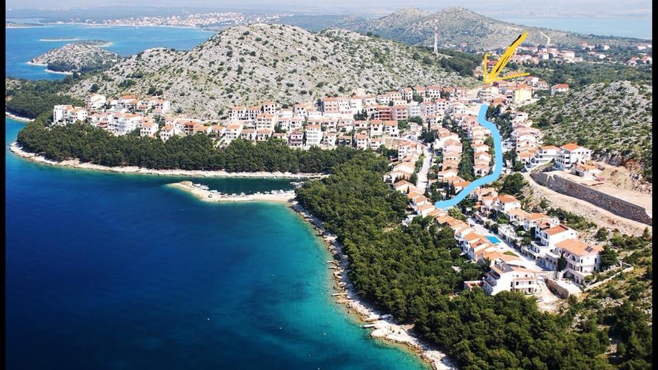 Apartmani se nalaze u mjestu Drage (Dolaška Draga), koje su smještene izmedu Zadar i Šibenijk, 8 km južno od Biograda. Drage su mirno primorsko mjesto smješteno između mora i jezera. Gosti mogu uživati u brojnim lijepim plažama i uvalama. Uz šetnicu uz more nalaze se kafići i pizzerije. Šetnica ( lungo mare) je okružena borovom šumom pruža ugodnu hladovinu u ljetnim danima. Drage su okružene nacionalnim parkovima; Kornati, Krka, Plitvica... Te parka pirode Vransko-Jezero uz koje se proteže biciklističke staza. Apartmani se nalaze u jednoj kuci,( prizemlje i I.-II.-kat) svaki sa svojom terasom i prekrasnim pogledom na more. More i šljunčana plaža udaljeni su 250 metara, a najbliža trgovina udaljena je 100 metara. Drage su idealne za one koji se žele odmoriti u miru tijekom svojih praznika .