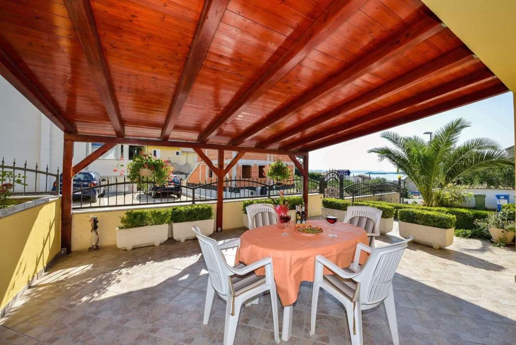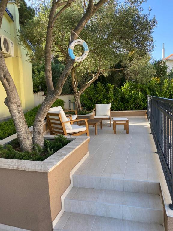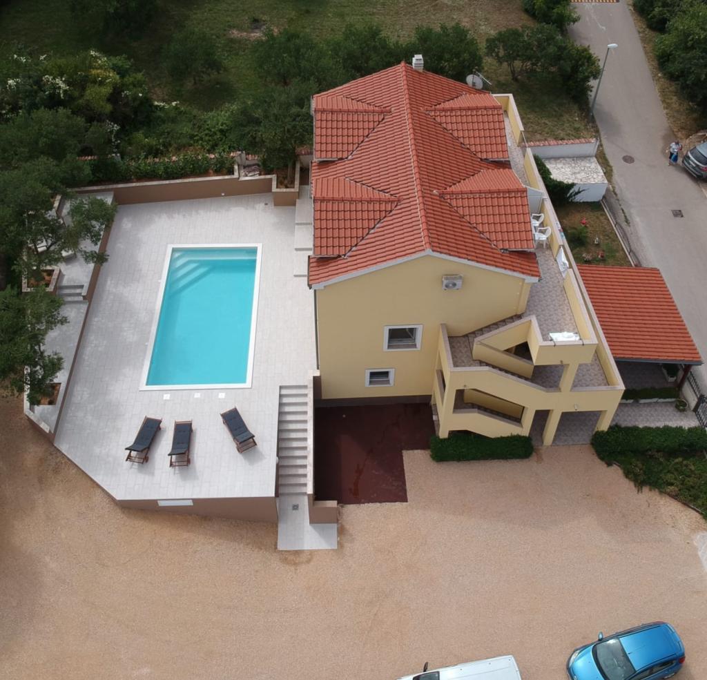 Novi, kompletno opremljeni apartmani s pogledom na more, bazen,SAT TV, klima, kuhinja, WC tuš, 2-3 minute hoda do mora. Objekat je smješten u prekrasnom masliniku koji se prostire na oko 2500 m2, s puno cvijeća i zelenila. Novo izgrađeni bazen od 32m2 s kupalištem od 200m2 i pogledom na more.Za zajedničku uporabu na raspolaganju je grill. Apartman broj 1 se sastoji od: 3 sobe (od toga 2 spavaće sobe), 55 m2, 4+2 osobe. Ulaz u prizemlju, preko terase u dnevnu sobu. Prizemlje: spavaća soba 1 s bračnim ležajem,dnevni boravak s kuhinjom i garniturom za sjedenje,spavaća soba 2 s bračnim ležajem i kaučem na na razvlačenje,wc/tuš, terasa. Apartmani 2 i 3 se sastoje od 2 sobe od toga 1 spavaća soba,dnevni boravak s kuhinjom i garnitura za sjedenje,wc/tuš, balkon. Relax House se sastoji od 3 sobe od toga 2 spavaće sobe,u sklopu dnevnog boravka se nalazi kuhinja i kauč na razvlačenje,wc/tuš,terasa. Holiday house se sastoji od 3 sobe od toga 2 spavaće sobe,dnevni i wc/tuš,terasa.