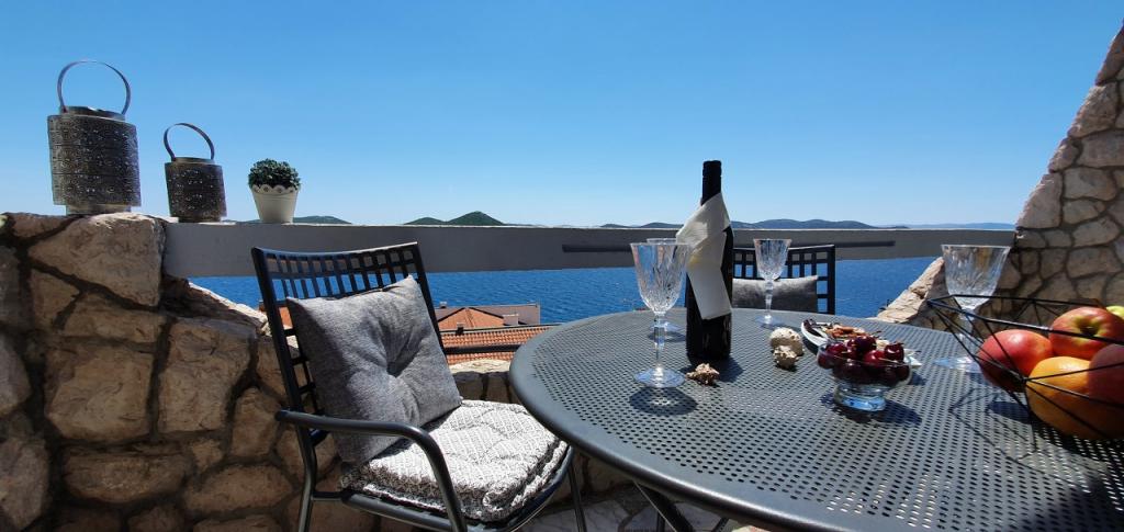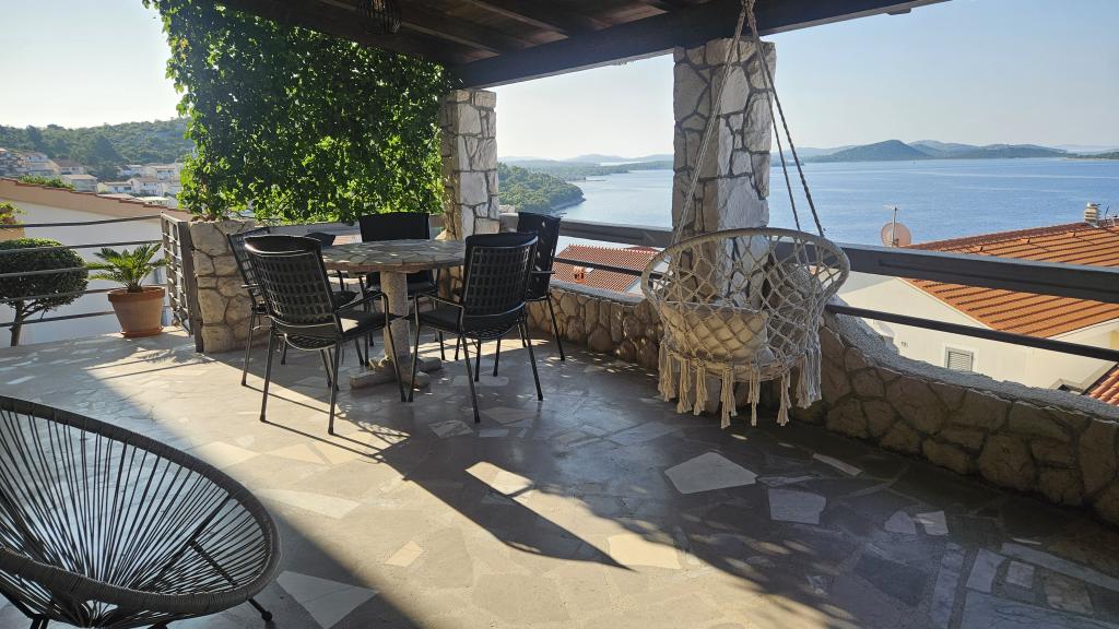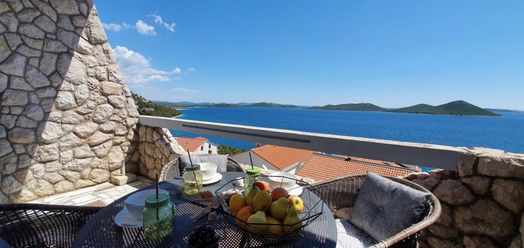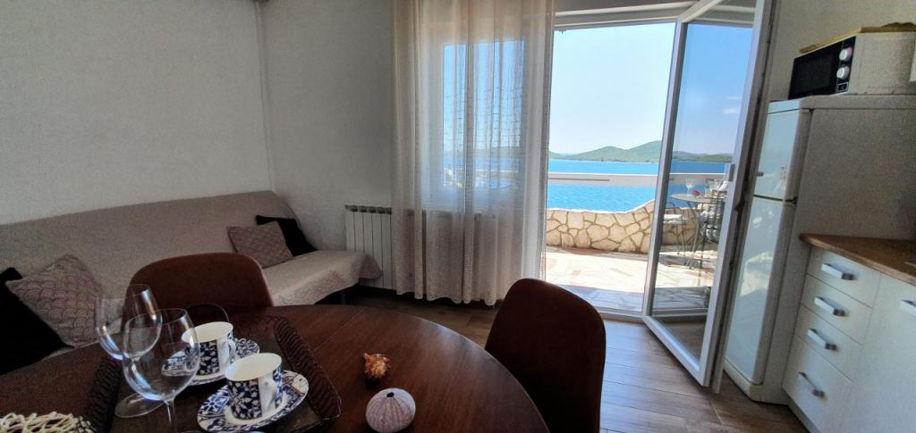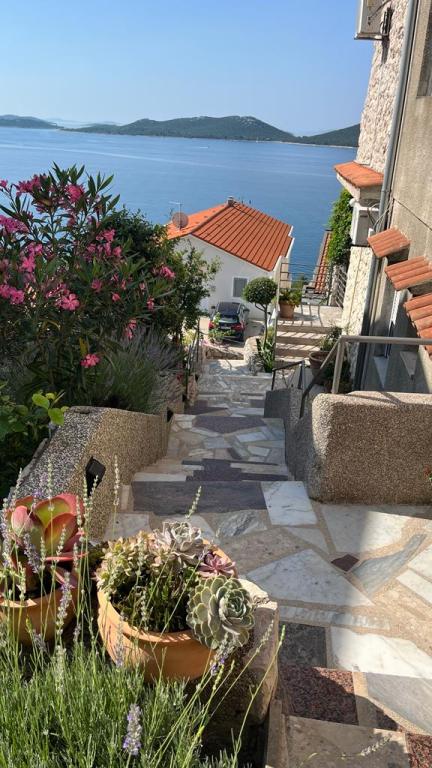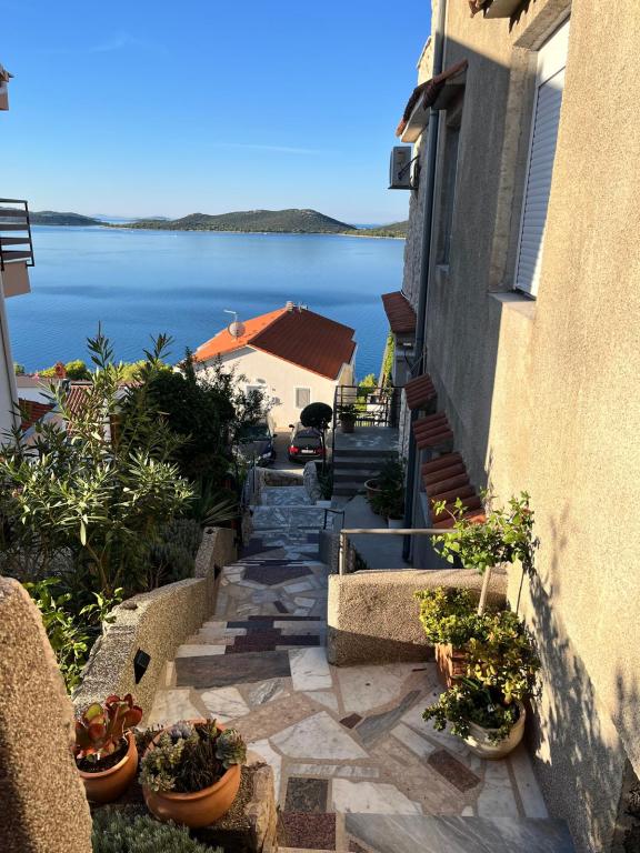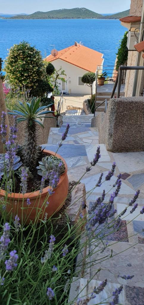 Kompletno i suvremeno opremljeni apartmani u mirnom predjelu sa prekrasnim pogledom na more koji se proteže čak do Kornata. Apartmani su smješteni u drugom redu do mora, tako da se samo stepenicama treba spustiti do mora, gdje se nalaze popločane plaže, kristalno čisto more te prekrasna hladovina i miris borova. A u neposrednoj blizini nalazi se i šljunčana plaža koja je pravi raj za djecu. Svi naši apartmani imaju osiguran parking te gosti mogu koristiti i zajednički grill. Do restorana i kafića na plaži ima 5 min. , a do najbliže trgovine 10 minuta pješačenja.
