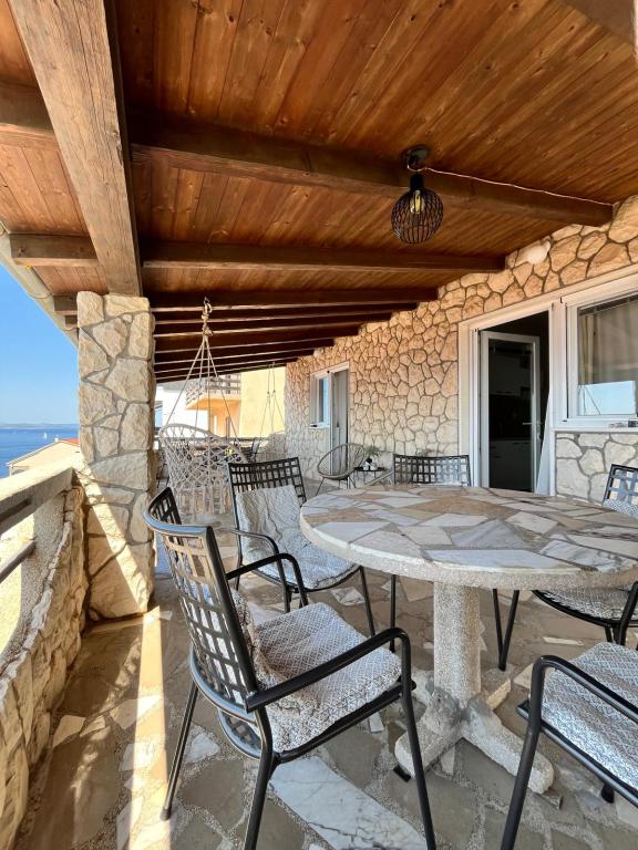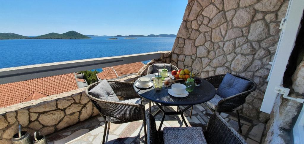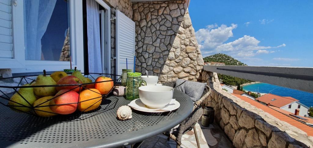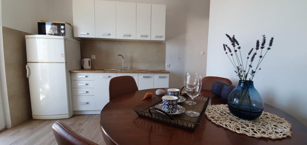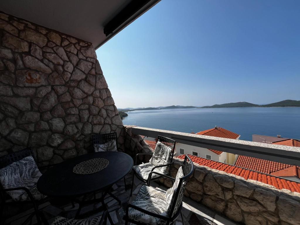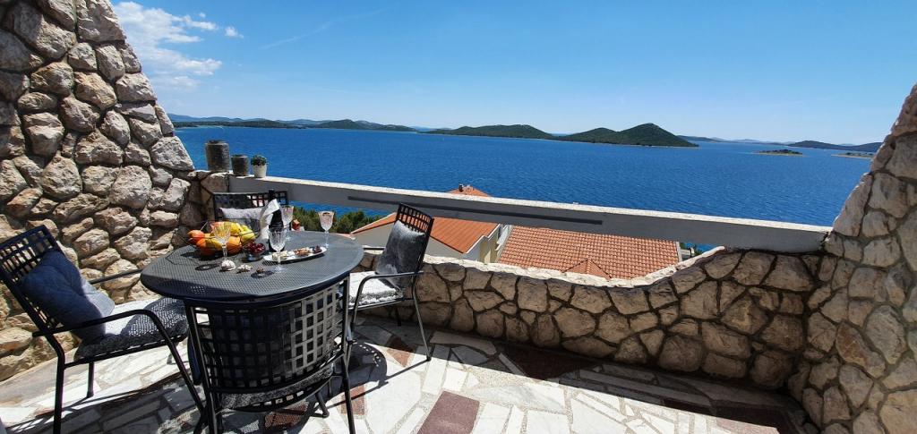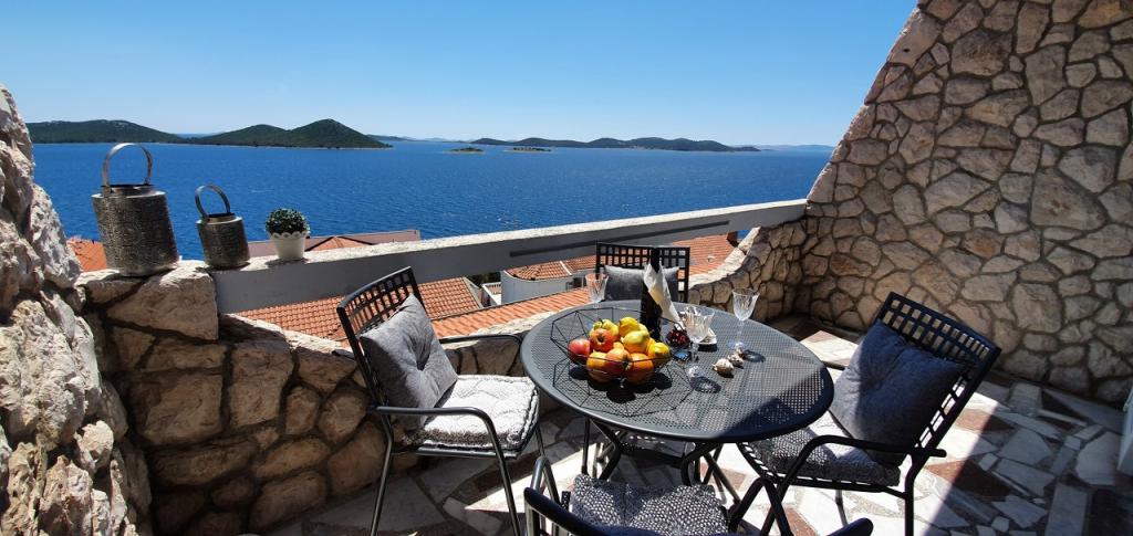 Kompletno i suvremeno opremljeni apartmani u mirnom predjelu sa prekrasnim pogledom na more koji se proteže čak do Kornata. Apartmani su smješteni u drugom redu do mora, tako da se samo stepenicama treba spustiti do mora, gdje se nalaze popločane plaže, kristalno čisto more te prekrasna hladovina i miris borova. A u neposrednoj blizini nalazi se i šljunčana plaža koja je pravi raj za djecu. Svi naši apartmani imaju osiguran parking te gosti mogu koristiti i zajednički grill. Do restorana i kafića na plaži ima 5 min. , a do najbliže trgovine 10 minuta pješačenja.