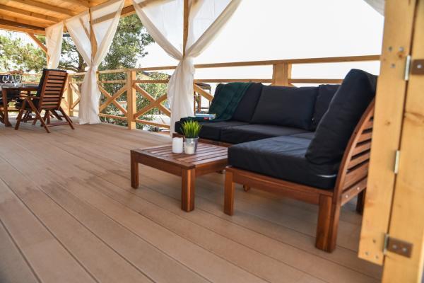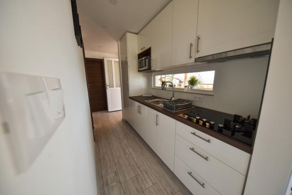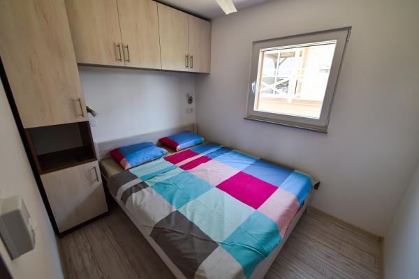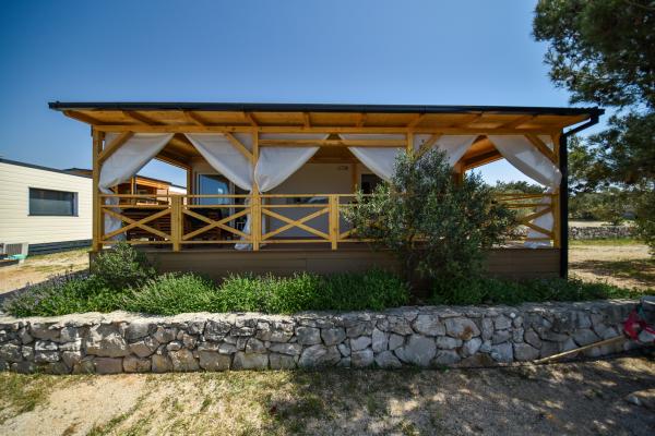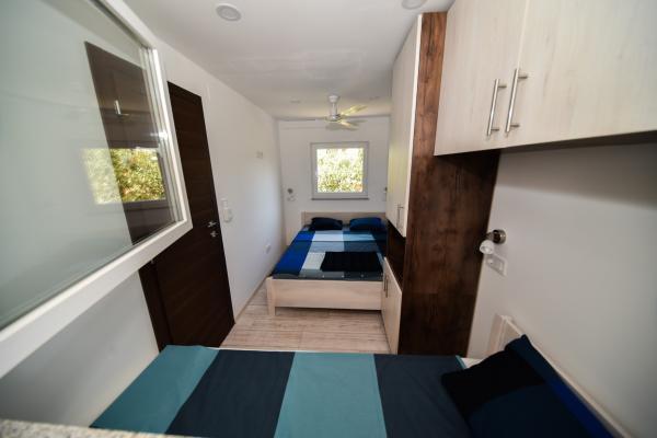 Mobilna kućica je sasvim nova mobilna kućica proizvedena 2018. godine, izrazito modernog dizajna. Unutar 36m² nalaze se 2 spavaće sobe, 1 kupaonica s tuš kabinom, kuhinja, blagovaona i dnevni boravak. Kućica može primiti 5 odraslih ljudi. Jedna soba ima bračni krevet u kojoj se nalazi i novi Samsung 32 LCD televizor sa satelitskim programima, dok druga ima bračni krevet i jedan jednostruki krevet. Obje sobe imaju ugrađene stropne ventilatore. Svi prozori imaju ugrađene komarnike. Kuhinja je opremljena staklo-keramičkom pločom, napom, hladnjakom od 180l (odvojen je hladnjak od zamrzivača), mikrovalnom pećnicom, te cjelokupnim priborom za kuhanje i serviranje jela i pića. U dnevnom boravku nalazi se novi Samsung 32 LCD televizor sa satelitskim programima te inverterski klima uređaj. Super brzi internet, vlastiti internet u kućici. Na središnju prostoriju se nadovezuje drvena terasa cca 28m².