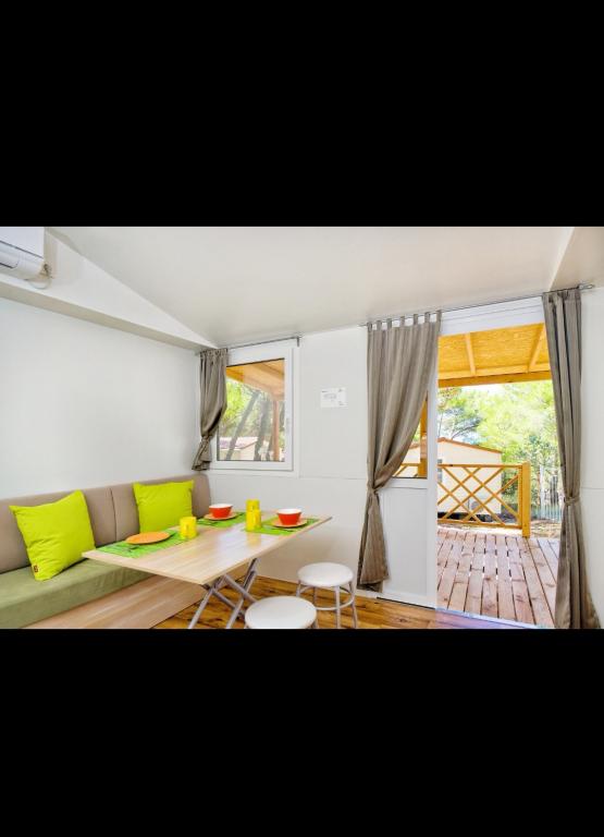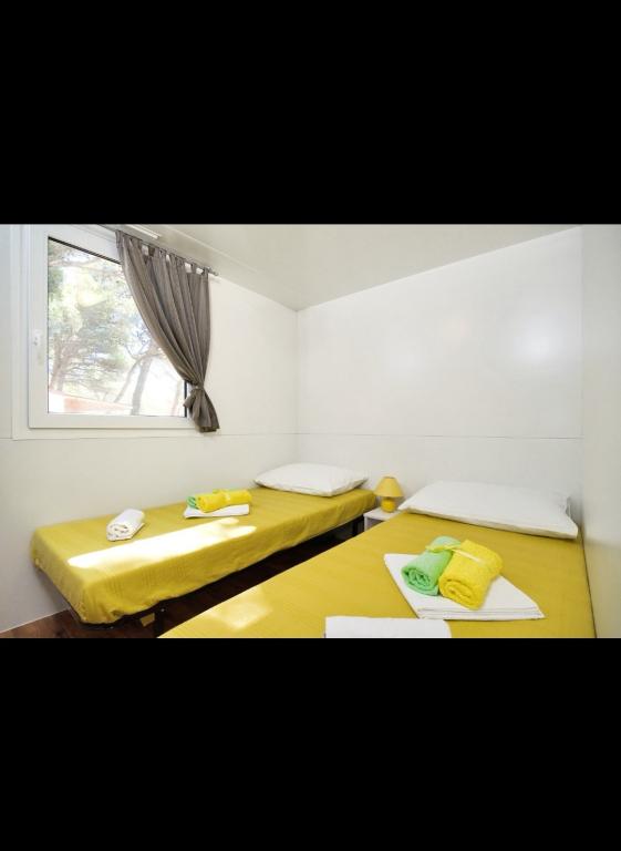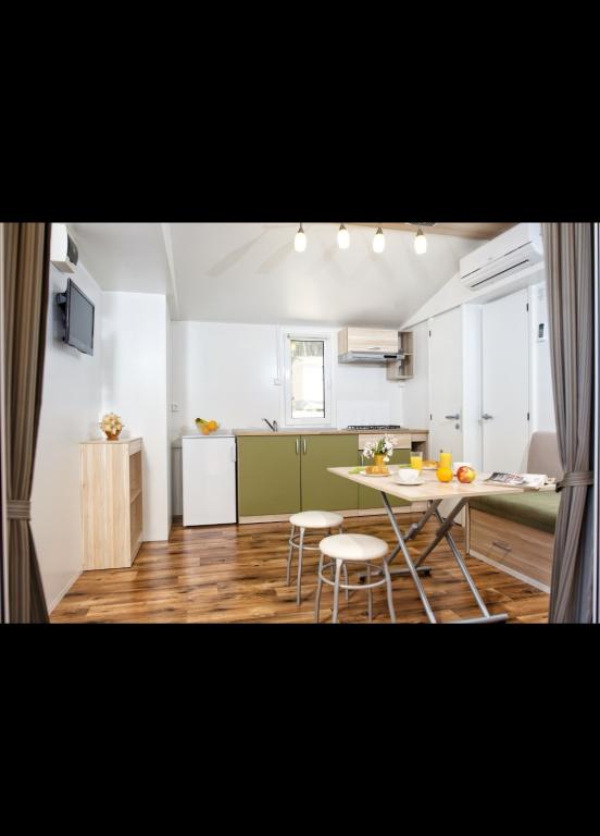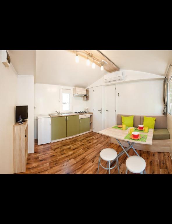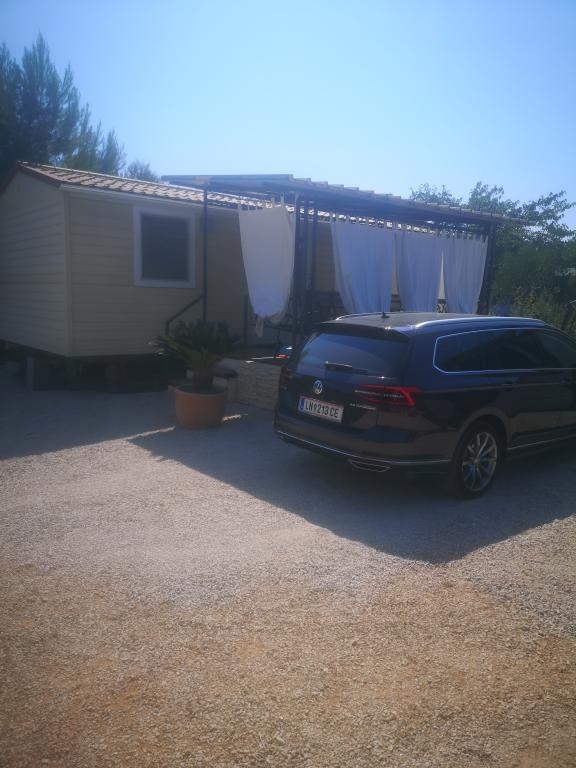 Klimatizirana mobilna kučica 30 m od mora sa 2 dvije spavaće sobe, kuhinjom, 2 kupaonice, dnevnim boravkom, terasom, parkingom, vanjskim tušom, grillom, ležaljkama i privatnim parkingom. Kućni ljubimci su dozvoljeni.