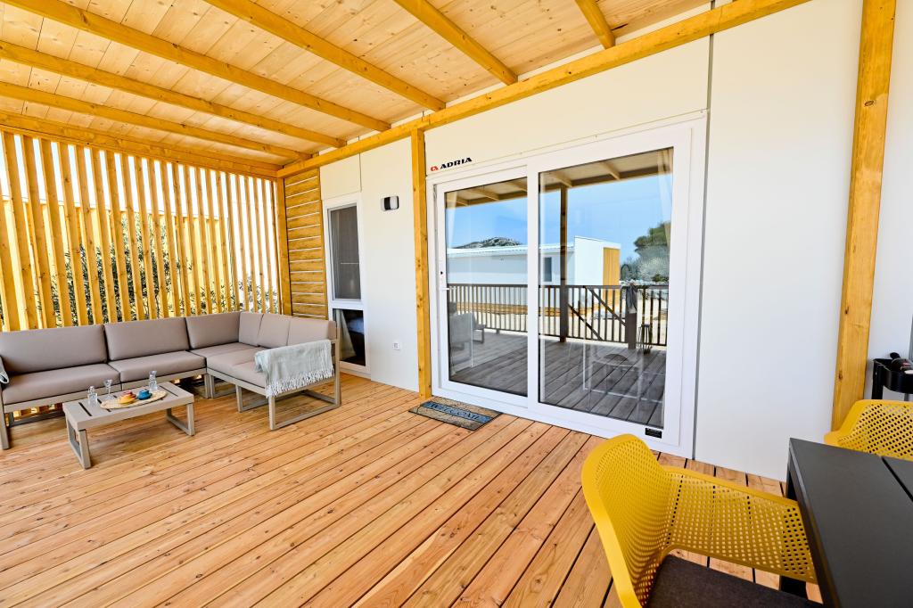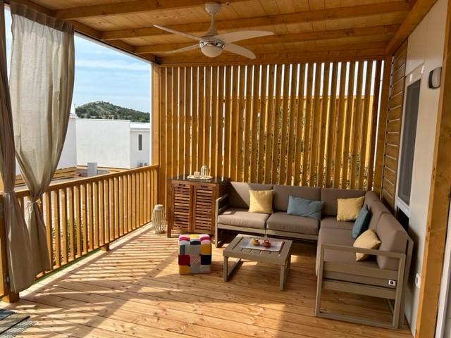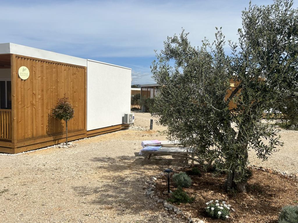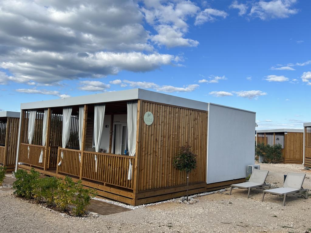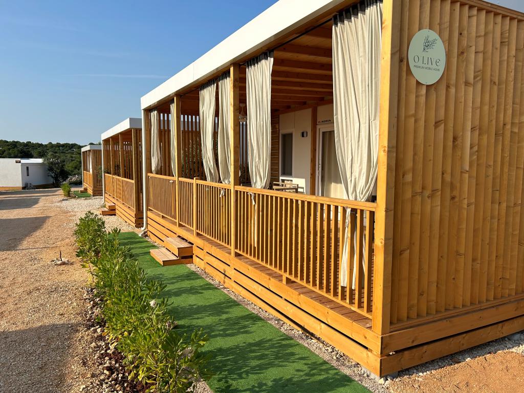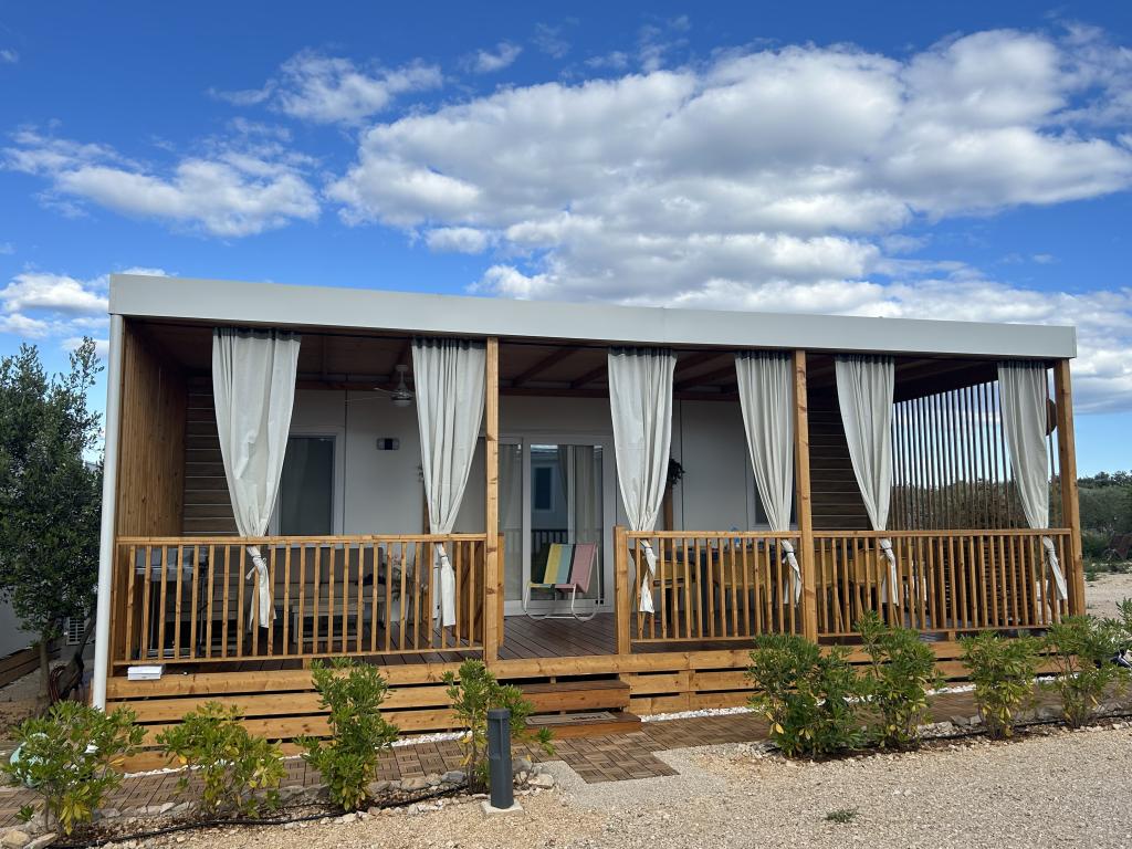 O'LIVE Premium Mobile Home nova mobilna kućica od proljeća 2023., idealna za odmor u mirnom kapu Oaza Lučica iz kojeg se pruža nezaboravan pogled na otočje Kornate. Dođite na odmor za dušu i tijelo! Kućica je potpuno opremljena, te modernog dizajna, veličine 63 m2 s vanjskom natkrivenom terasom. Kućica sadrži bogato opremljenu kuhinju s blagovaonskim prostorom, jednu spavaću sobu s bračnim ležajem 160x200 s kupaonicom, jednu spavaću sobu s dva ležaja 90x200, dodatnu kupaonicu (obje kupaonice su kompletno opremljene - wc, tuš, ručnici, sušilo za kosu) te dio uz blagovaonu u kojem se nalazi kauč na razvlačenje dimenzije za spavanje (mogućnost ležaja za dodatne dvije osobe). Natkrivena terasa sadrži namještaj za opuštanje te blagovaonski stol. Uz kućicu se nalazi solarni tuš, plinski gril, ležaljke za odmor te parkirno mjesto. Naknada za završno čišćenje se nalazi u cijeni noćenja. Prijava i boravišna pristojba se vrši direktno u kampu na recepciji, tamo se i preuzima ključ m. kućice.
