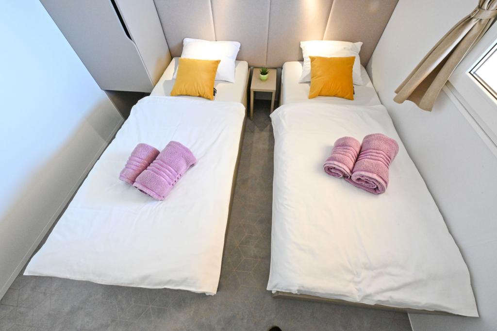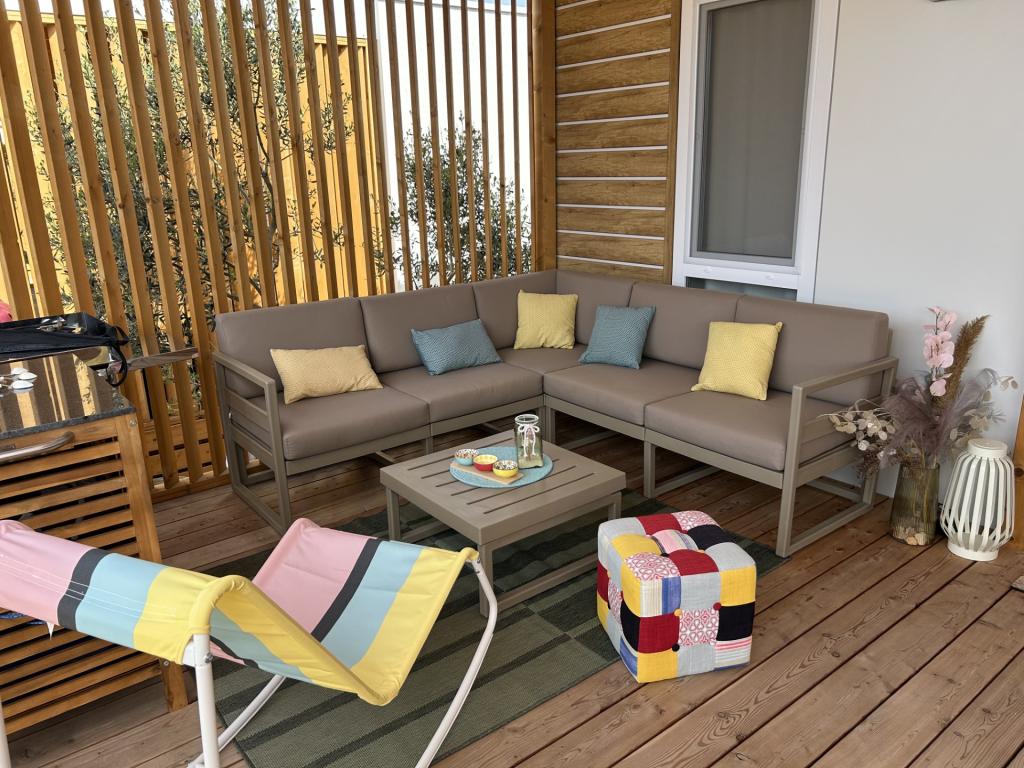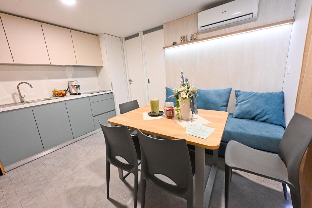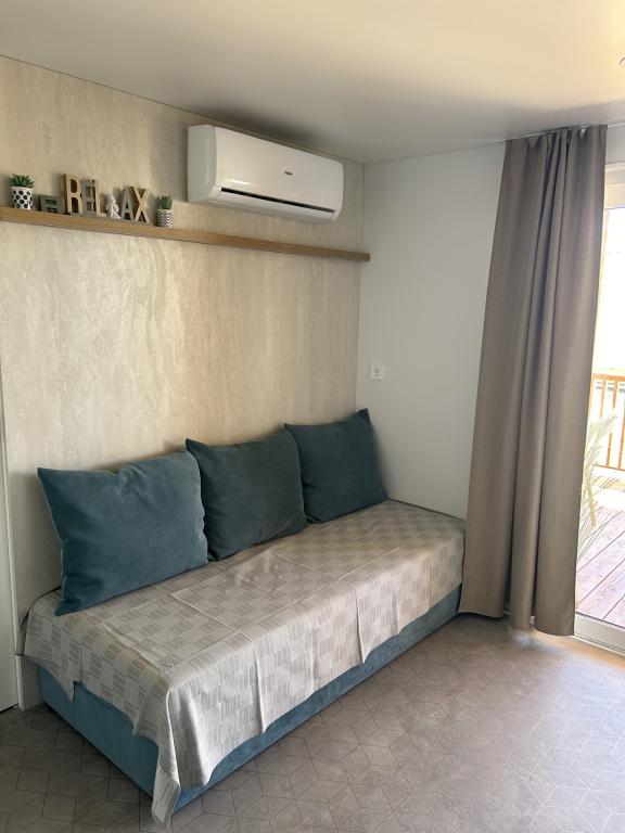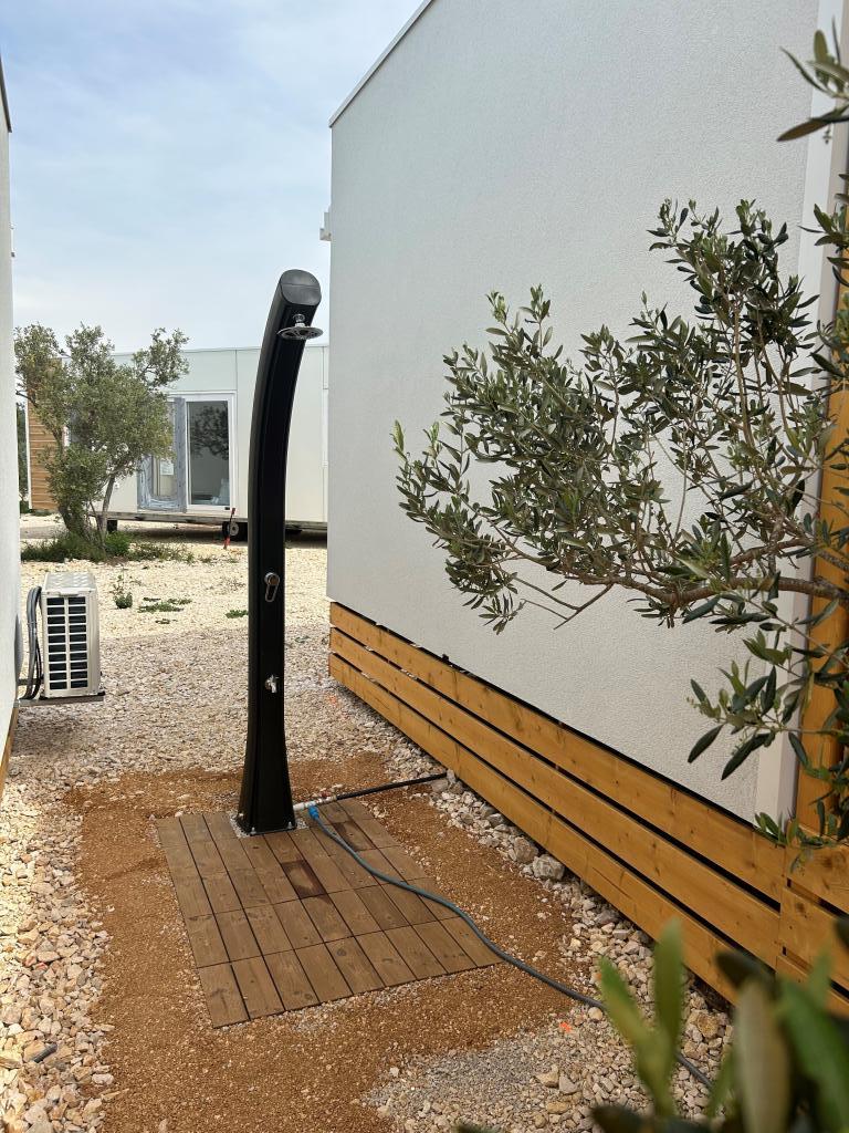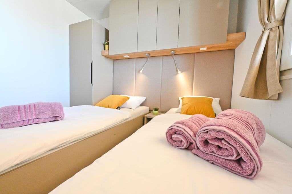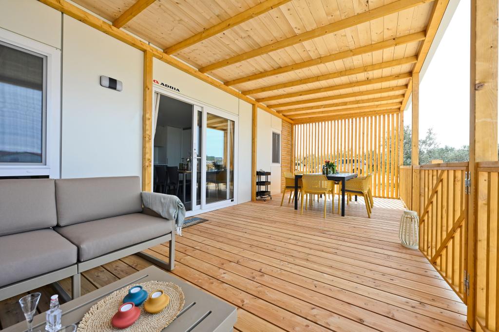 O'LIVE Premium Mobile Home nova mobilna kućica od proljeća 2023., idealna za odmor u mirnom kapu Oaza Lučica iz kojeg se pruža nezaboravan pogled na otočje Kornate. Dođite na odmor za dušu i tijelo! Kućica je potpuno opremljena, te modernog dizajna, veličine 63 m2 s vanjskom natkrivenom terasom. Kućica sadrži bogato opremljenu kuhinju s blagovaonskim prostorom, jednu spavaću sobu s bračnim ležajem 160x200 s kupaonicom, jednu spavaću sobu s dva ležaja 90x200, dodatnu kupaonicu (obje kupaonice su kompletno opremljene - wc, tuš, ručnici, sušilo za kosu) te dio uz blagovaonu u kojem se nalazi kauč na razvlačenje dimenzije za spavanje (mogućnost ležaja za dodatne dvije osobe). Natkrivena terasa sadrži namještaj za opuštanje te blagovaonski stol. Uz kućicu se nalazi solarni tuš, plinski gril, ležaljke za odmor te parkirno mjesto. Naknada za završno čišćenje se nalazi u cijeni noćenja. Prijava i boravišna pristojba se vrši direktno u kampu na recepciji, tamo se i preuzima ključ m. kućice.