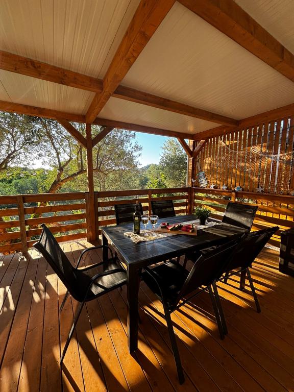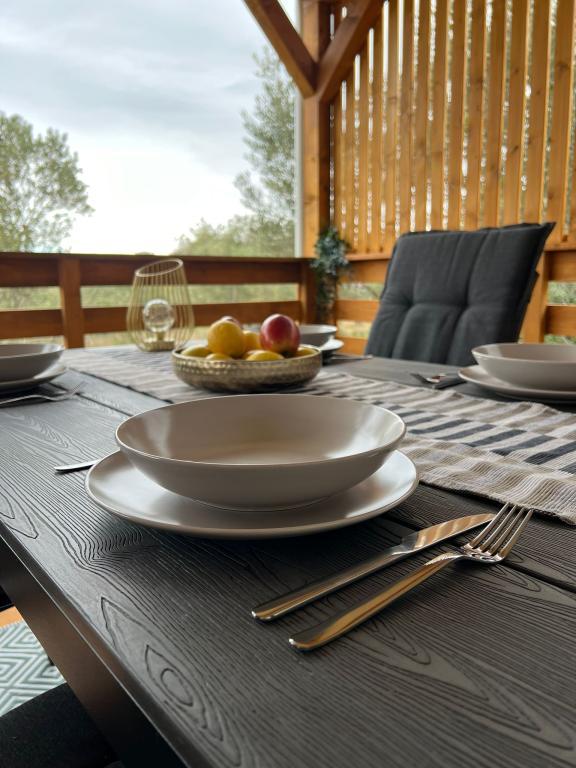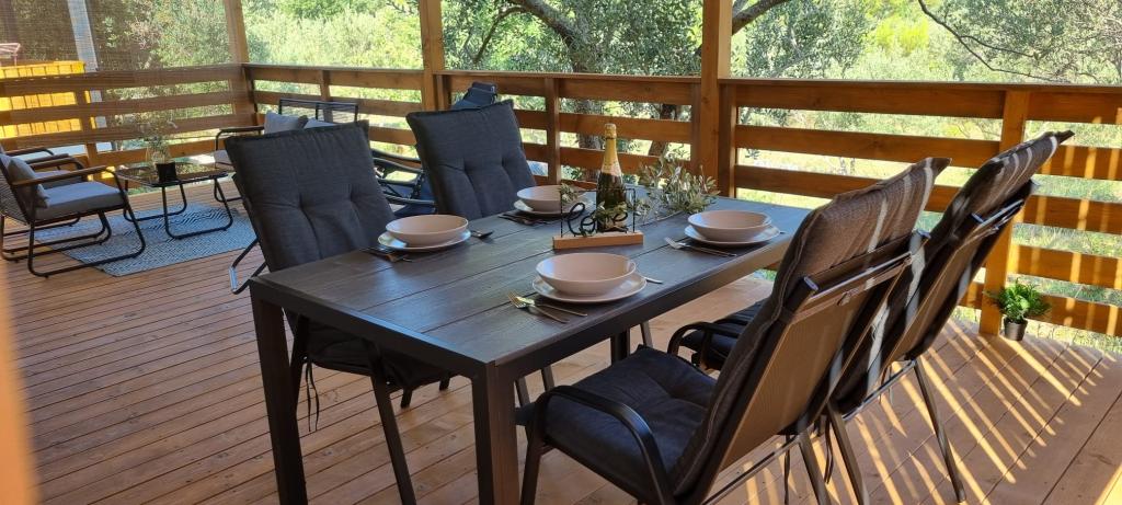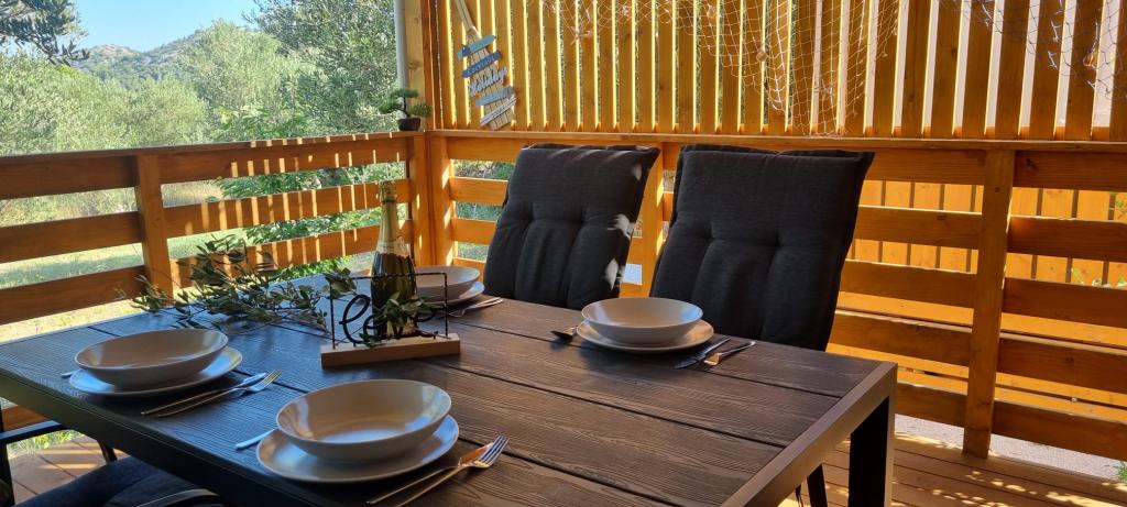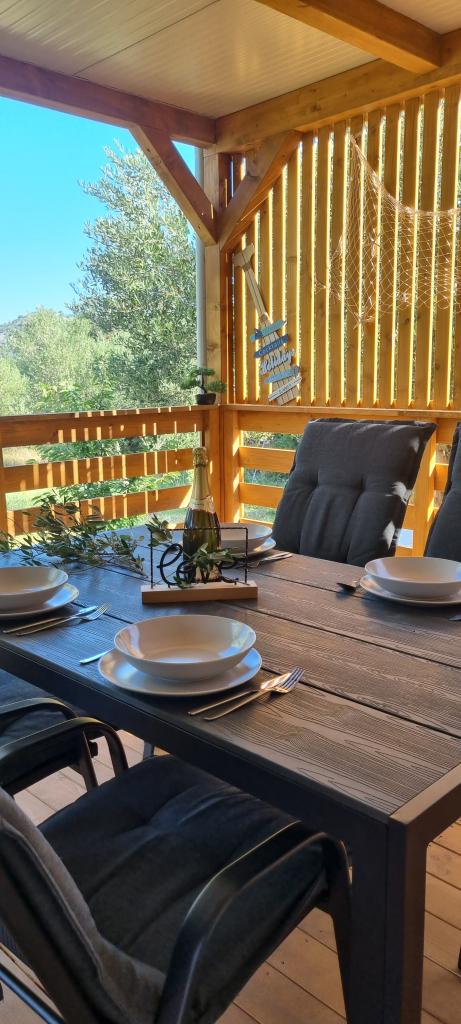 Olive Nest je mobilna kućica dostupna od 2024. godine. Kućica je potpuno opremljena, te modernog dizajna, veličine 32 m2 s 32 m2 vanjske natkrivene terase. Kućica je opremljena spavaćom sobom sa bračnim krevetom, te sobom sa dva odvojena kreveta, također sadrži ležaj na razvlačenje za dvije osobe. Unutar smještaja se nalazi kuhinja sa blagovaonskim prostorom, te kupaonica (wc, tuš kabina, umivaonik). Natkrivena terasa daje priliku za cjelodnevni boravak i opuštanje. Na terasi se nalazi vanjski stol za objed. Dođite i iskusite odmor u srcu Dalmacije! ️- 1 soba (bračni krevet) - 2 soba ( dva odvojena kreveta) - ležaj na razvlačenje za dvije osobe - prijenosni krevetić za dijete do 2. g. -️ 1 kupaona (tuš i umivaonik) ️- velika terasa 32m2, sa stolom za 6 osoba i lounge zona ️- Wi-Fi ️- TV ️- perilica posuđa ️- električni roštilj - vanjski tuš ️- opremljena kuhinja - besplatan parking - usisavač - fen - perilica rublja
