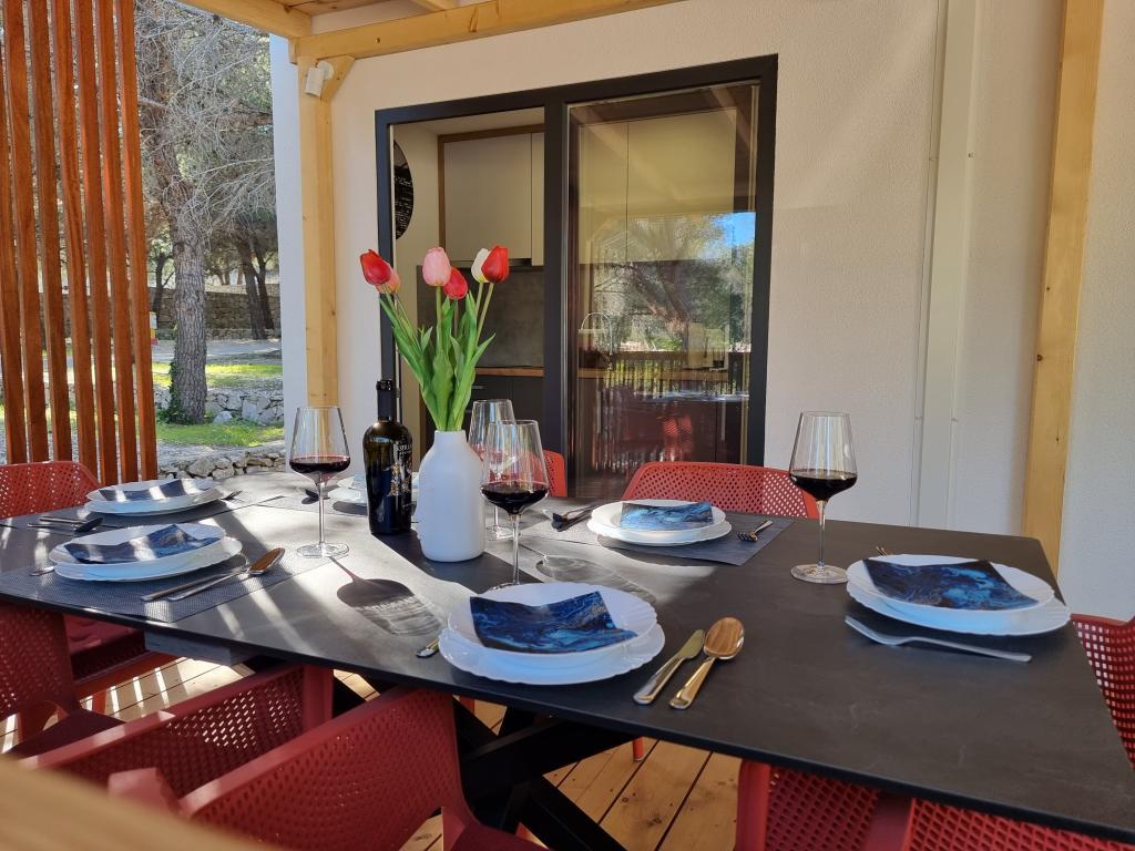 Premium mobilna kuća "SUN & JOY" je potpuno nova i smještena na izvrsnoj lokaciji unutar kampa "Oaza mira" sa 4 zvjezdice tek 50-ak metara od plaže Porat, te 150m od plaže Oaza mira. Namijenjena je smještaju do 6 osoba. Ima 2 spavaće sobe, jednu s bračnim krevetom, a drugu s 2 odvojena kreveta. U dnevnom boravku nalazi se kutna garnitura na razvlačenje s nadmadracem koja se može koristiti kao ležaj za 2 osobe. Kućica je moderno opremljena sa svim uređajima za udoban boravak, kao npr. klima uređajem za hlađenje i grijanje, TV sa satelitskim programima, te besplatnim internetom. Kuhinja je opremljena hladnjakom sa zamrzivačem, štednjakom, mikrovalnom pećnicom, kuhalom za vodu, tosterom, mikserom, te adekvatnim posuđem i tavama. Na prostranoj terasi nalazi se stol za objedovanje te lounge garnitura. U vrtu je na raspolaganju roštilj, a uz samu kučicu možete parkirati svoje vozilo. U cijenu su uključeni ručnici i posteljina. Pušenje je dozvoljeno na terasi. Kućni ljubimci nisu dozvoljeni.